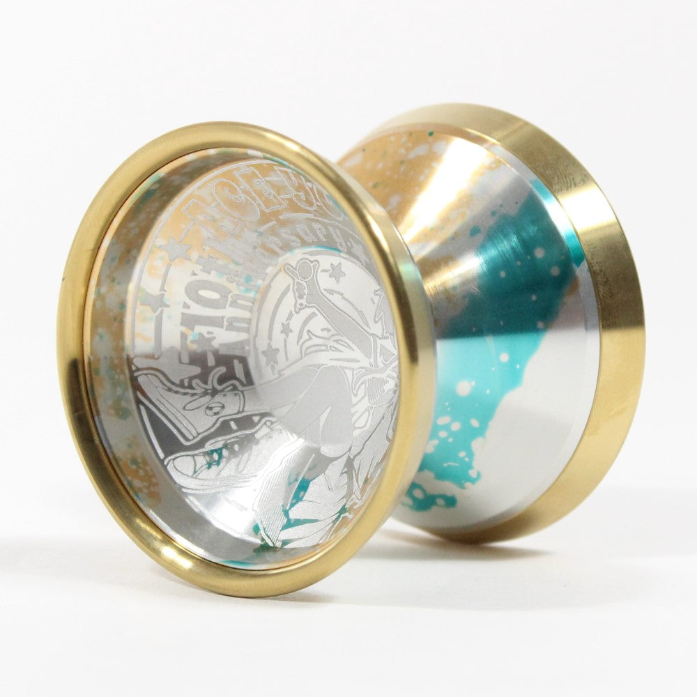 The Mercy series from AceYo has produced some of the most high performance and competition ready outer ring bimetal designs to date! With the 7th generation AceYo has blended various elements from previous Mercy interations into a new bimetal yo-yo all it's own! In Mercy 7 you'll find a familiar but refined, fast playing and wide V shape body that is very capable of the wildest tricks, including horizontal play! Featuring thick stainless steel rims for incredible stability and spintime to provide the serious push that will have your hardest tricks begging for Mercy!