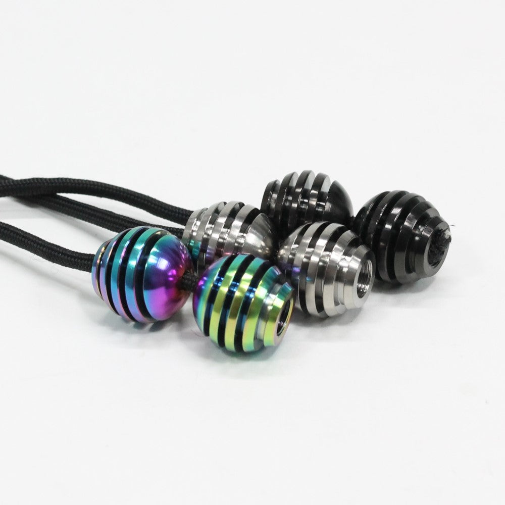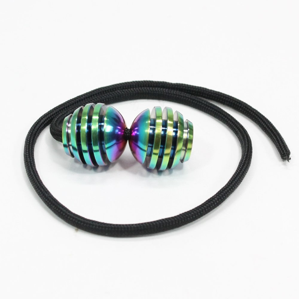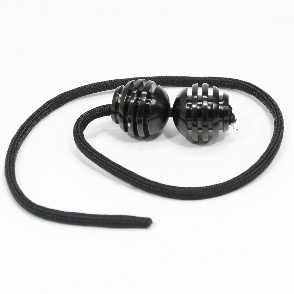 The Titanium Honeys are essentially round in shape, but have a slight taper at the bottom, giving a little extra grip and leverage where it's sometimes needed. The honey-dipper style fins give great grip along the sides for manipulating the beads, while the rounded top gives a comfortable "shelf" where the beads rest against the fingers during play. They perform beautifully, for players at any skill level.