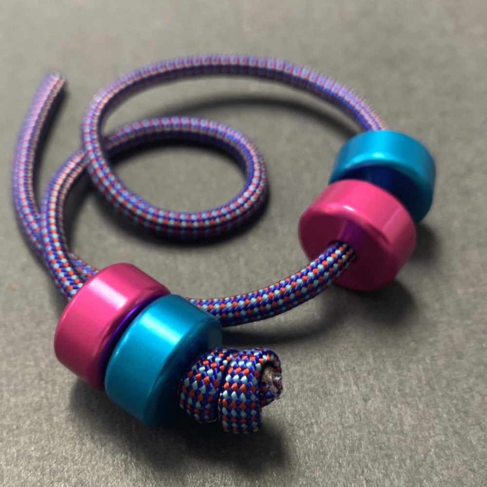 Aroundsquare's Hydras are one of the most iconic designs in modern begleri. While the design is very simple, legit Hydras are immediately distinguishable from the many other stacked bead designs that have followed since their initial release. The 2018 Hydra AL Sports continue the tradition with the same bead size and configurable mule-bead design, but updated with a fresh colour range and a 3.5mm "Goldilocks" bore, suitable for both 275 and 550 paracord.