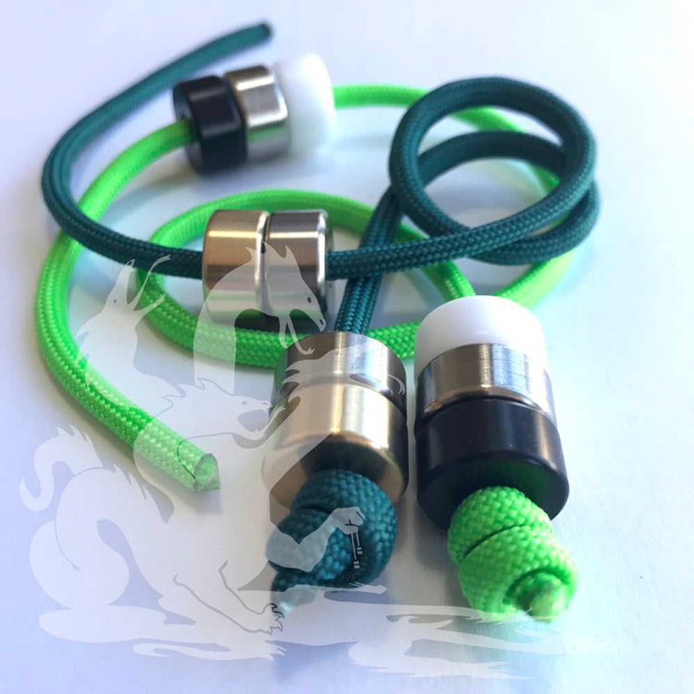 The Mini Hydras are a slightly down-sized version of the original Hydra beads, 14mm in diameter, and 7mm tall each (compared with 16 and 8 in the originals). All Mini Hydras are set up to accommodate 550 paracord.