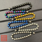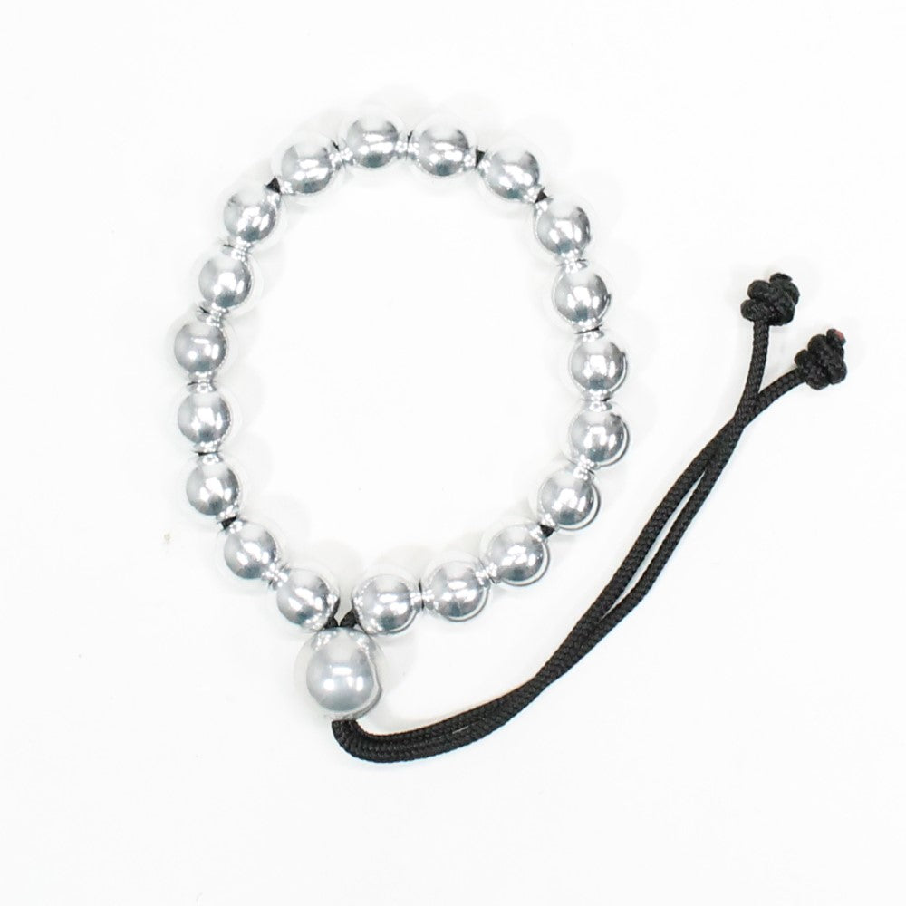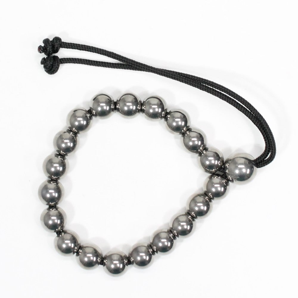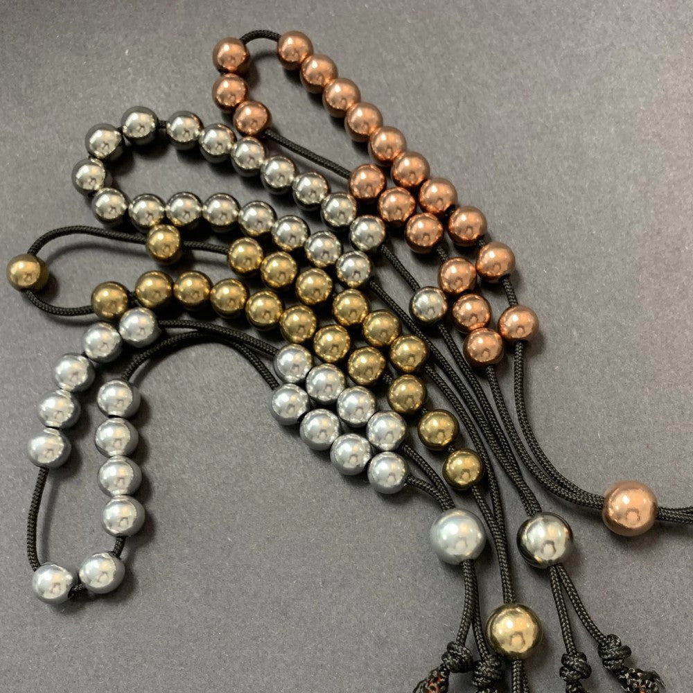 The MKUltras 10mm Edition consists of 21x 10mm beads, with a 11.8mm Micro Boss bead to close/ adjust the loop. Though less than 2mm smaller in diameter than the beads of the original Ultras, the beads on the 10mm Edition feel substantially smaller on the wrist, in the pocket, and in the hand. The smaller sized beads are lighter, making them easier to flip in the manner of begleri, while the round shape makes them easy to grab individually for bead counting and breath work.