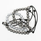 The unique setup of the MKUltras allows them to be worn like mala beads, or carried discretely in the pocket. They adjust by means of a simple friction fit through the larger "Micro Boss" bead closure. Although the design is exceedingly simple, we're fairly confident you won't find anything quite like them around. This is a knotless system, and does not require any special lock bead. The cord is simply compressed when threaded through the Micro Boss bead, providing a reliable, secure fastener, that is easy to adjust when needed.