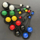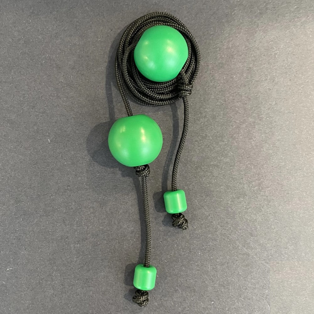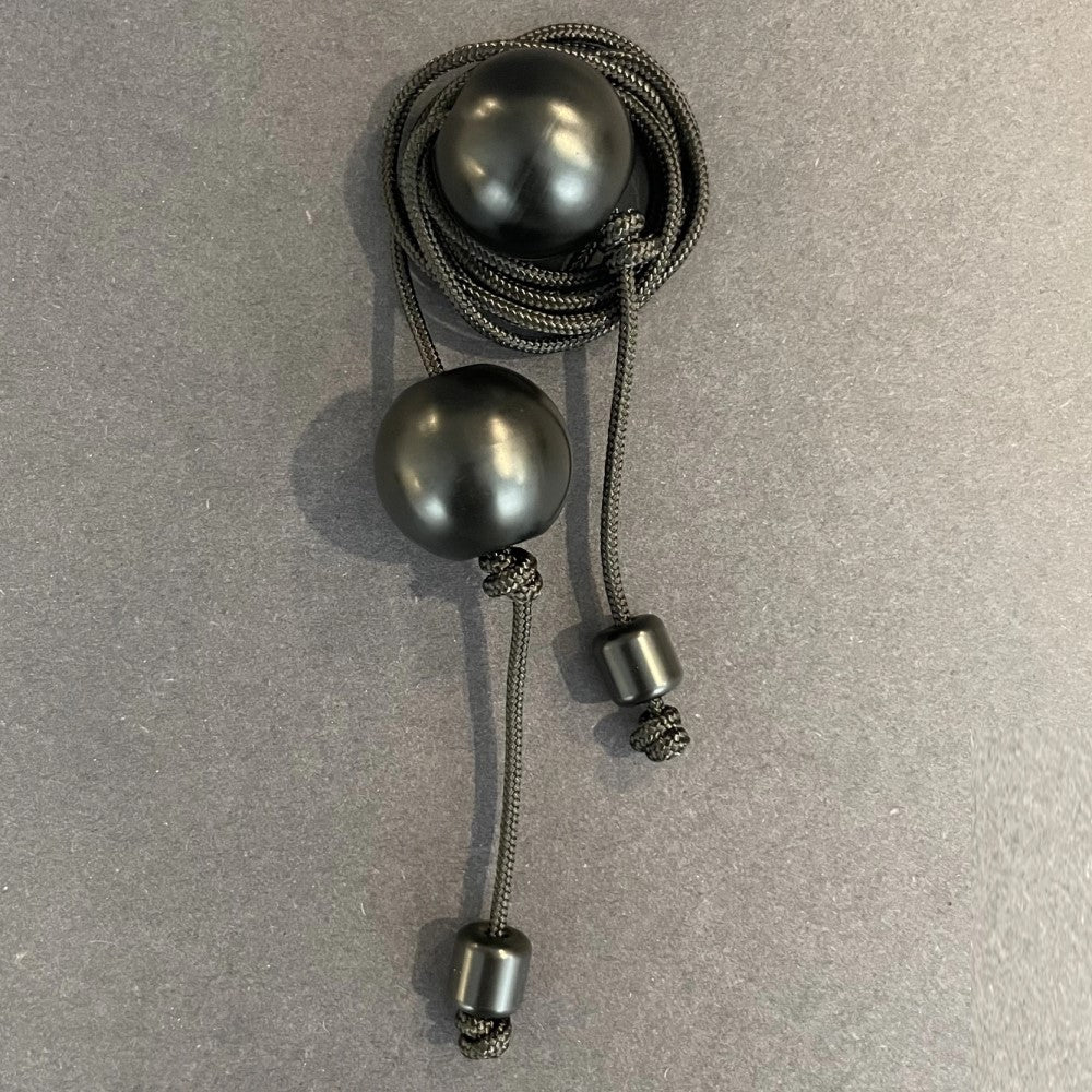 The new Mini Monkey Knuckles in Delrin are an ultra smooth, and highly portable version of the original. They rival the larger Delrin version in terms of flow and playability, in a much smaller package. They feature a thinner cord (the same used on the wooden versions), which is strong, supple, and abrasion resistant, and since the balls themselves are lightweight, the thin cord is comfortable to manipulate when performing tricks. The knuckles and end grips are machined from high quality POM/ delrin material, which will hold up to any abuse you give them. The larger balls measure XX in diameter, with a 3.5mm bore, and the cylindrical end grips are ~11x11mm with a 3.5mm bore. Each set weighs around XX g all in. They will ship with with two additional strings, a carry bag, an info card, and a couple of stickers.
