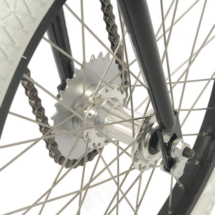 Hub/axle: Nimbus 36H (silver) aluminum hub 6 bolt disc rotor mount for UDC safety sprocket (28 tooth) -