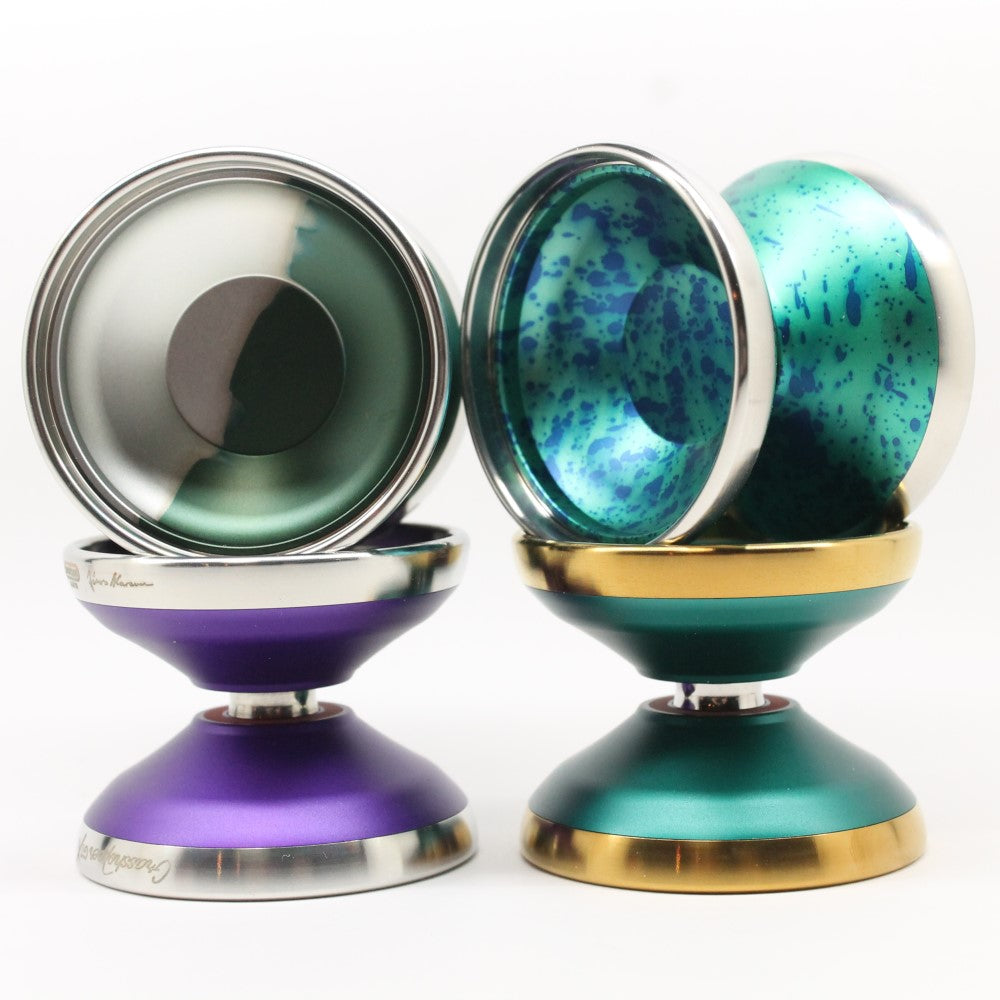 The Duncan Grasshopper GTX is World Champion Janos Karancz Signature Yo-Yo. A high performance bi-metal yo-yo, with finely tuned design details for competitive play & everyday carry. Comes with a premium concave bearing included for premium feeling and extra spin-time!