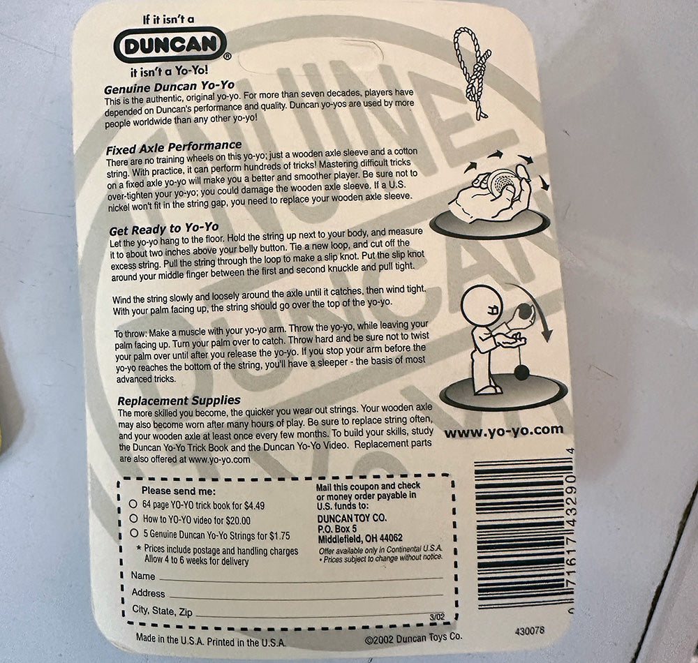 The Duncan ProYo is a classic yo-yo, A favorite among colectlectors, but still a great beginner yo-yo. It is one of the first loopers, designed for looping tricks. (2A)