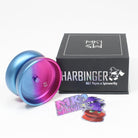 The Harbinger is a small-bearing aluminum yoyo designed for perfect responsiveness and long spin. It's a collaboration with Spinworthy yoyos, and based on their popular wooden Harbinger model.