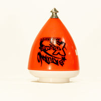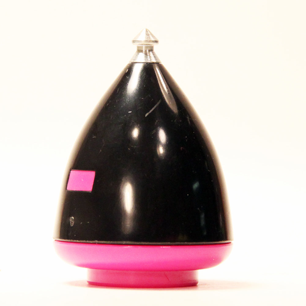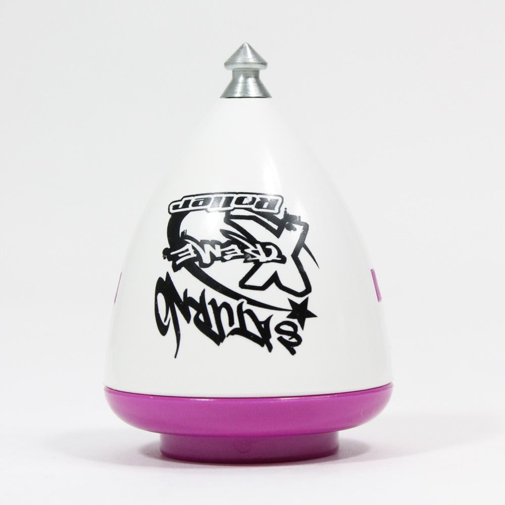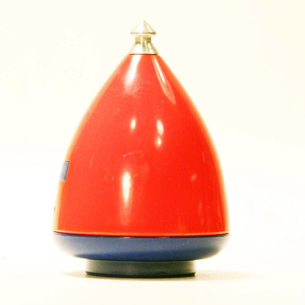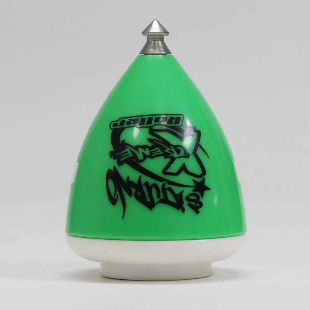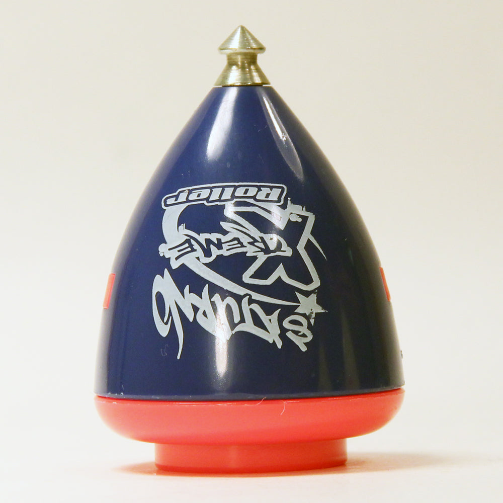 The Saturno Xtreme Roller is a medium sized, fast and steady spin top. It has a ball bearing, allowing the tip to rotate independently of the body. This feature enables a bunch of tricks not possible with a fixed axle spin top.