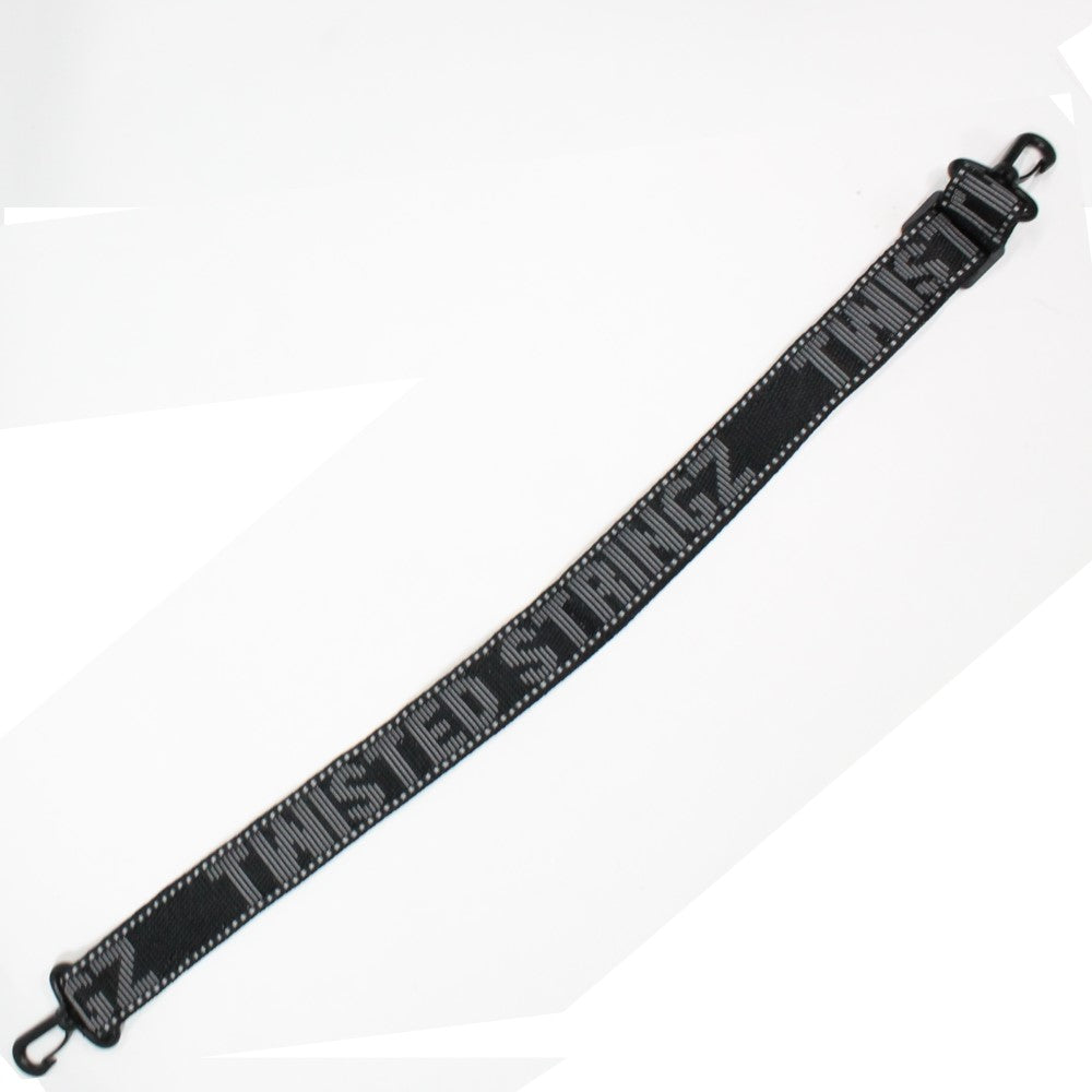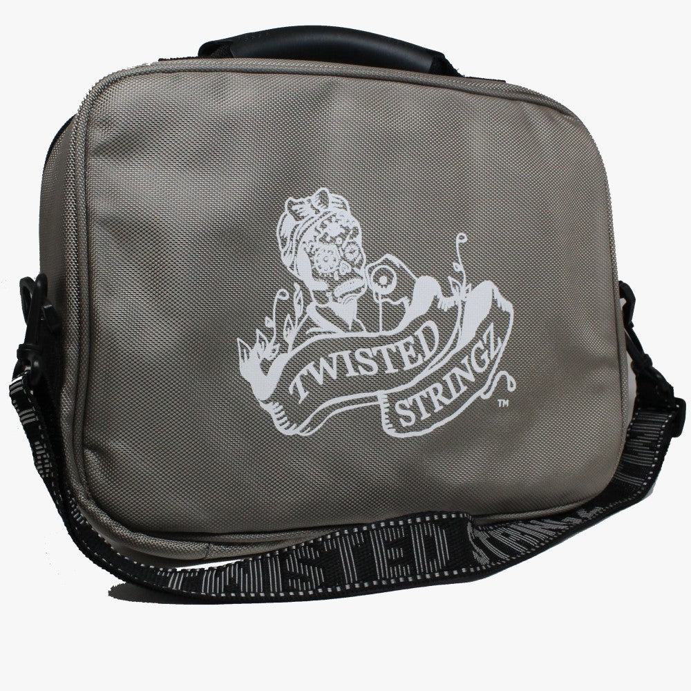 The case has a comfortable reinforced rubber handle and an adjustable shoulder strap that is detachable. Twisted Stringz is custom stitched on the adjustable shoulder strap.