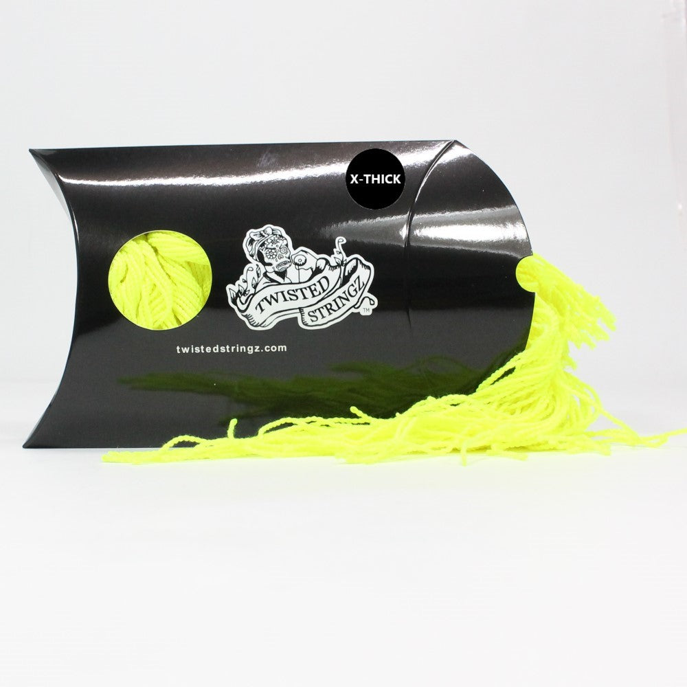 Twisted Stringz feature a polyester that breaks in quickly and maintains a long string life. It performs well and holds slacks and whips exceptionally well. The vibrant neon colors make it easy to see on stage or camera.