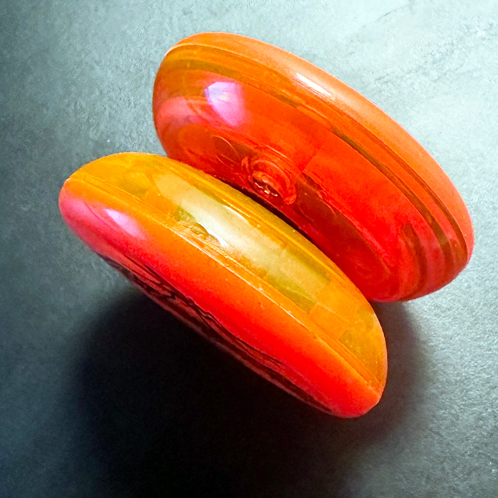 We might be taking some liberties by calling this a vintage yo-yo. They were still being made up until a couple of years ago. But they were an awesome yo-yo. And some people just can't enough of them. Slightly undersized, rounded butterfly shape. They are just really nice playing yo-yos.