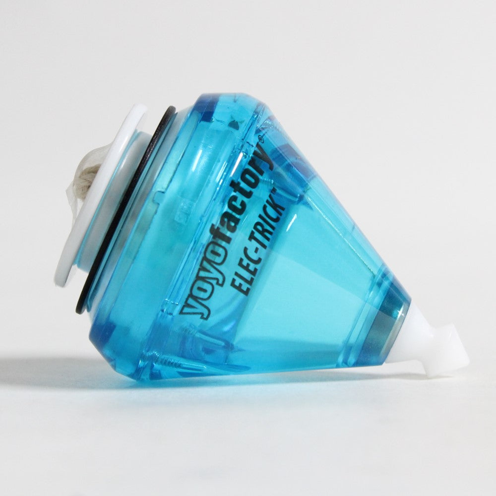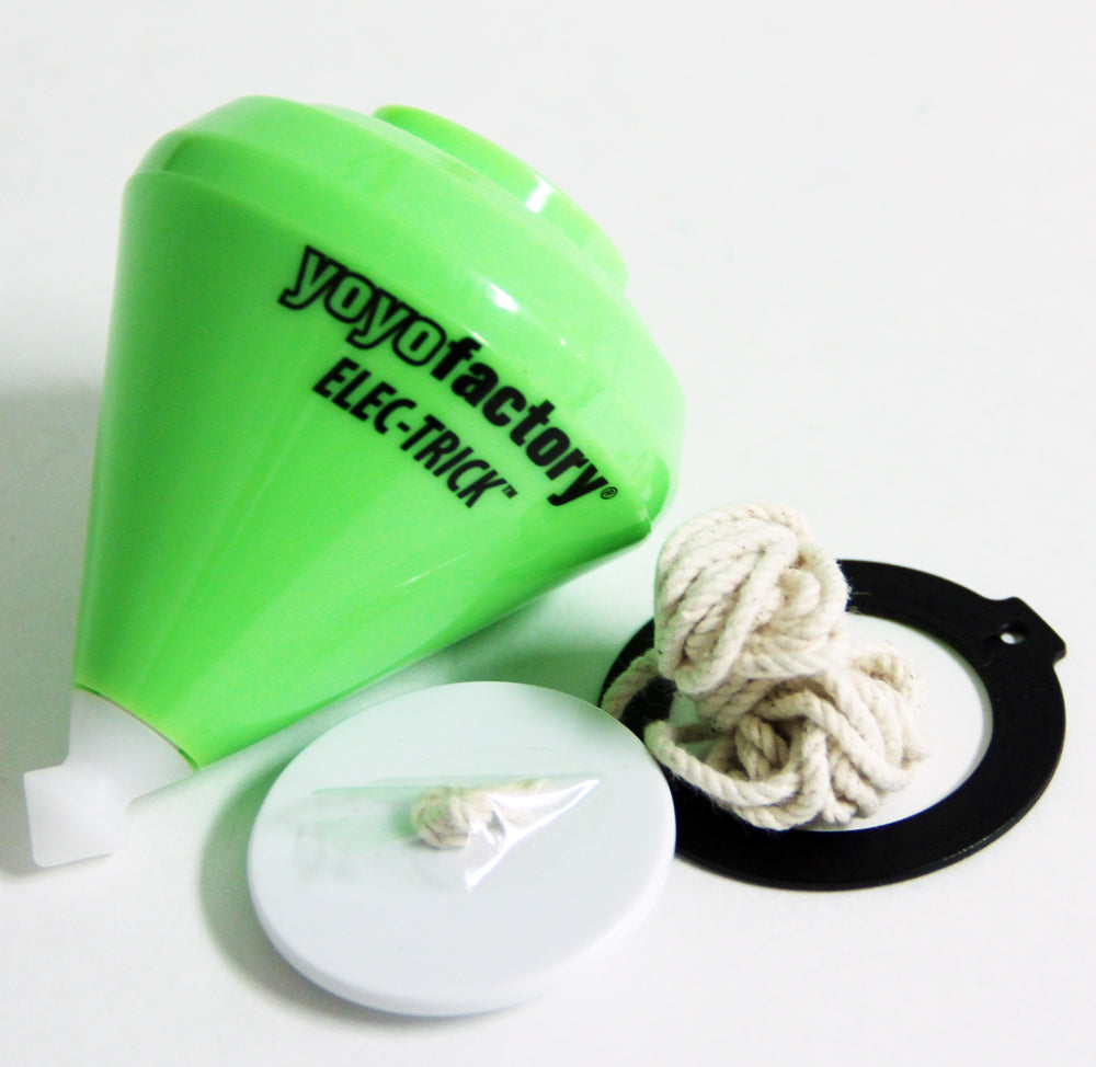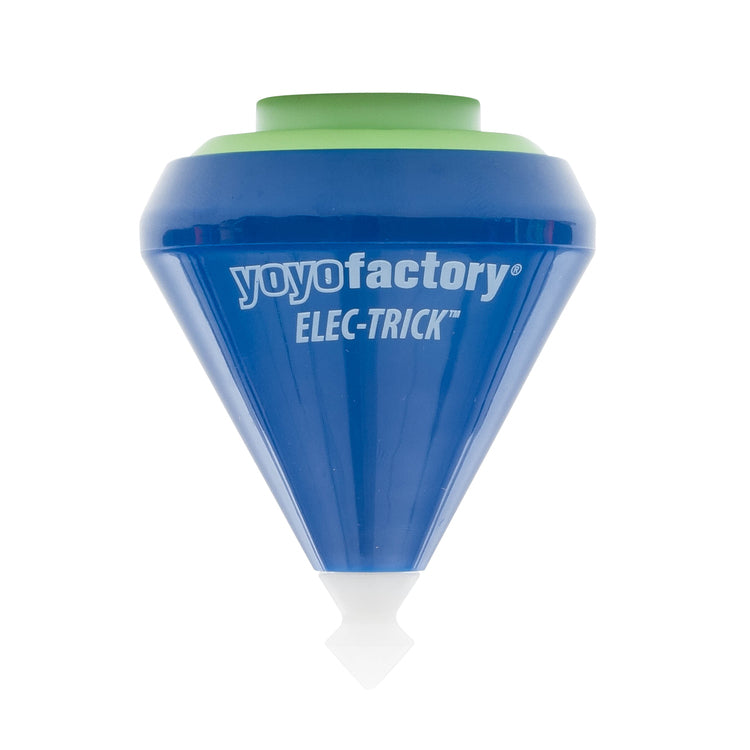 Tough polycarbonate body built for impacts. Elec-Trick has a bearing tip for extra long spin time perfect for mastering gyro flops and cork-screws. This top has an entry level price with professional performance. Includes string ring to help beginners learn faster.