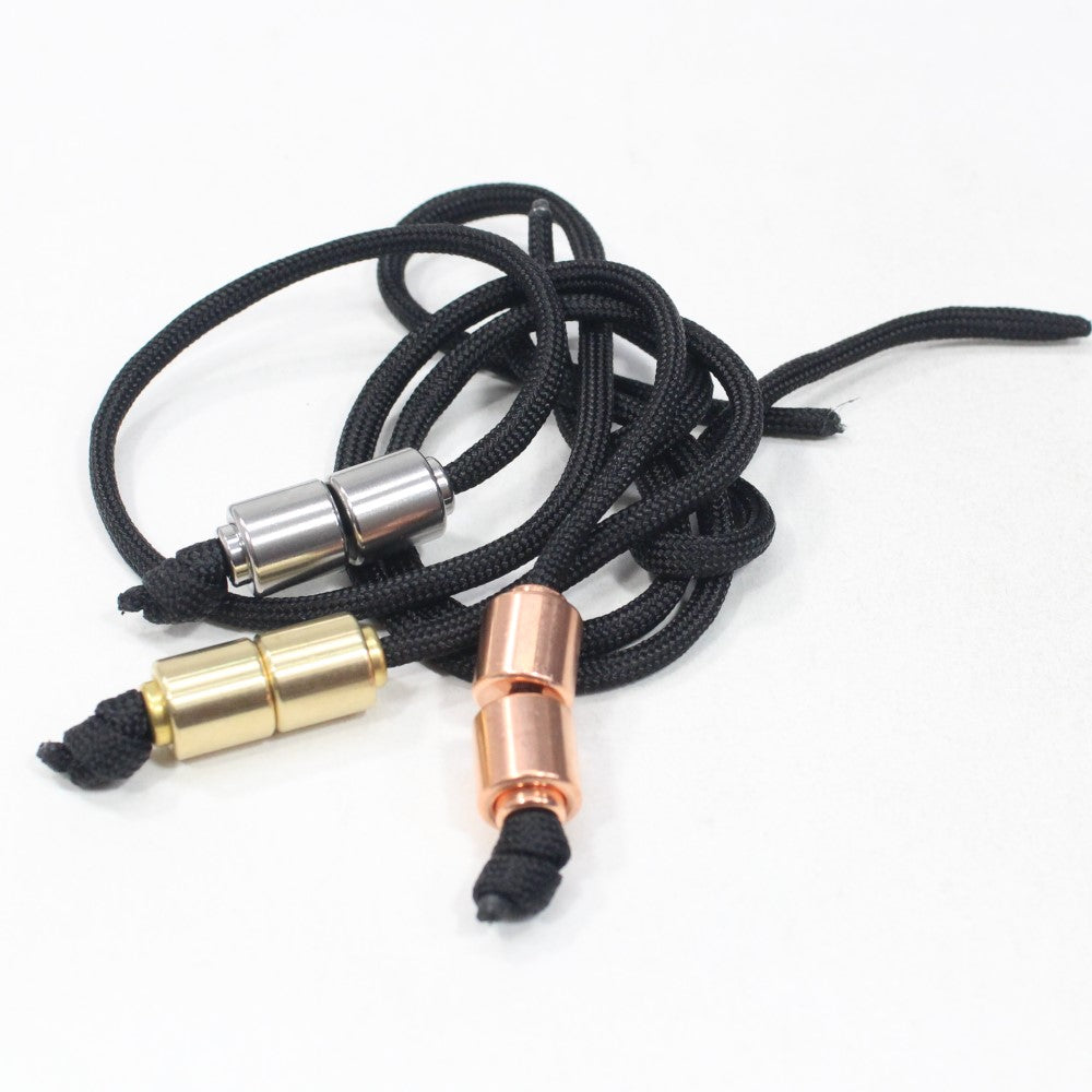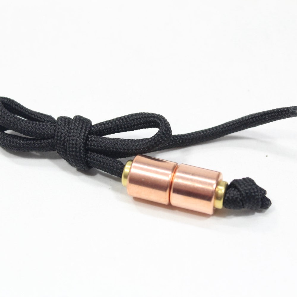 Affectionately known as the Pocos, these small but mighty begleri sets are a unique designs. They feature one Micro Standard beads, which were originally designed as weight inserts for larger shells, but take things a step further along the original design path with the inclusion of a tiny Nano Standard bead. What makes them so unique in feel, apart from the size, is the fact that the nanos were designed to protrude slightly from the base of the Micro bead, giving a very distinctive look and feel. The beads can be played with the protruding nano towards the top, for a more bottom-heavy, stable feel; or with the nano protruding downwards, for a more top heavy, nimble performance (see last photo). The beads feature a 3.5mm "Goldilocks" bore, which is suitable for play on either 550 or 275 paracord.
