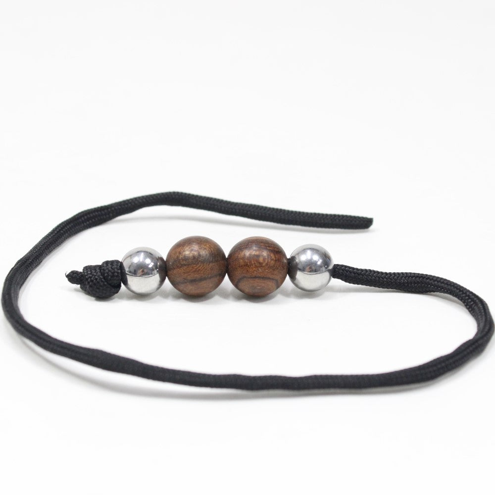 Aroundsquare's Tradcore begleri series is a "back to the roots" design that resembles traditional Greek begleri more than anything else we have produced to date. The multi-bead design, with the bottom-heavy wood/ metal pairings makes these sets soft and springy to play, while the woven cotton cord they ship with provides a unique feel. Exotic wood 15mm beads have been paired with metal 11.8mm "Micro Boss" beads to create elegant sets with excellent overall weighting. These sets feel heavier than the specified weight due to the length and bottom weighting of the design.