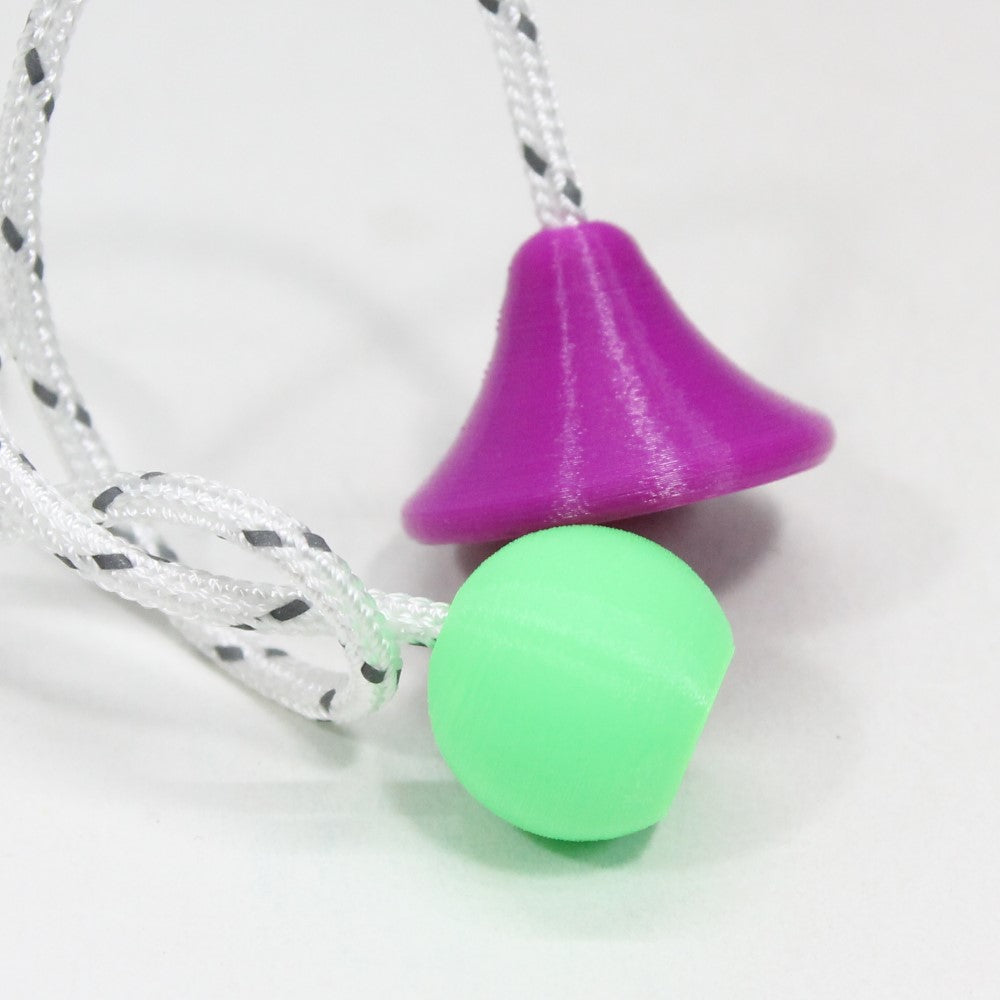 The Original Begleri Kendama fusion, 7g of mind blowing skill toy goodness. Original fusion design allows for smooth natural feeling begleri play with two fun shaped beads, being the first to incorporate Kendama elements and stalls thanks to its unique design. Ultra Light compared to other begleri, the beads come in just under 3.5g each while still slinging well above their weight, great for beginners and experts alike. The weight is no longer a limiting or safety factor. Canadian Made using non toxic sugar based plastic, 100% biodegradable in soil within as little as 6 months. the set includes instructions, spare paracord and sticker.