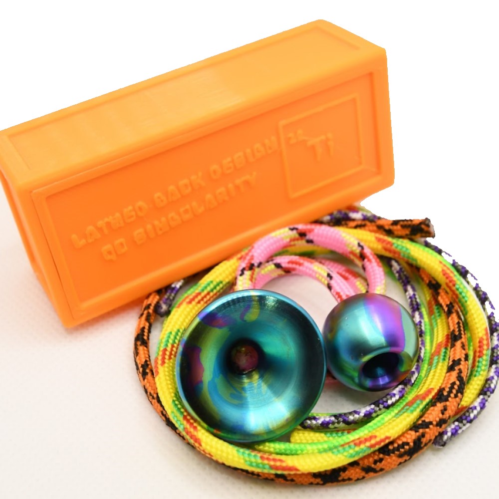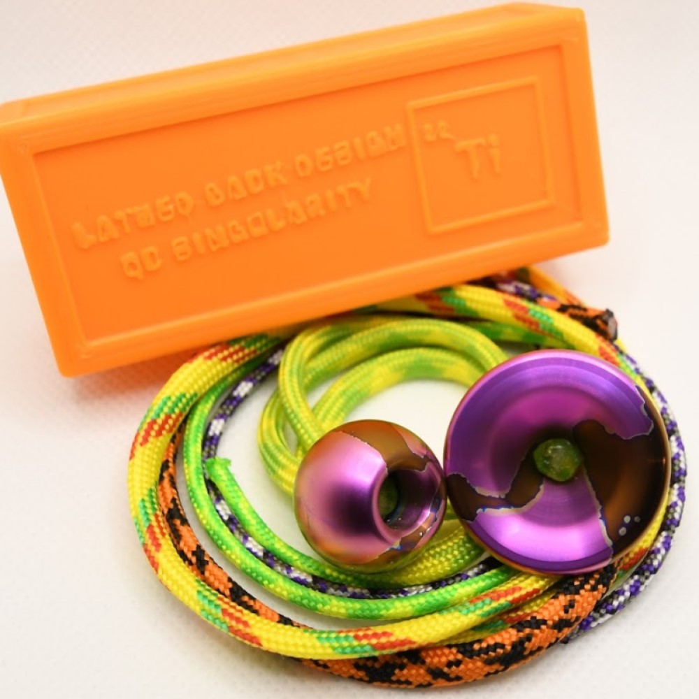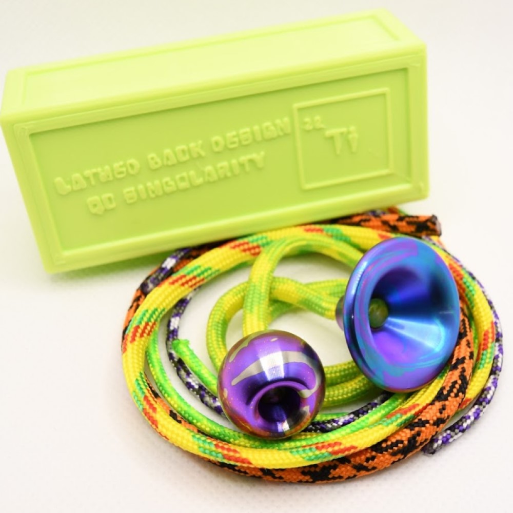 Quantum Colliders singularity titanium edition. The original Begleri Kendama fusion great as a set of lanyard beads! Comes with one set of grade 5 titanium beads, 11.9g per bead and one set of classic plastics. Small batch boutique finishes done in house, no two are identical and every set is unique. They come in a nice printed display box with cord and instructions.