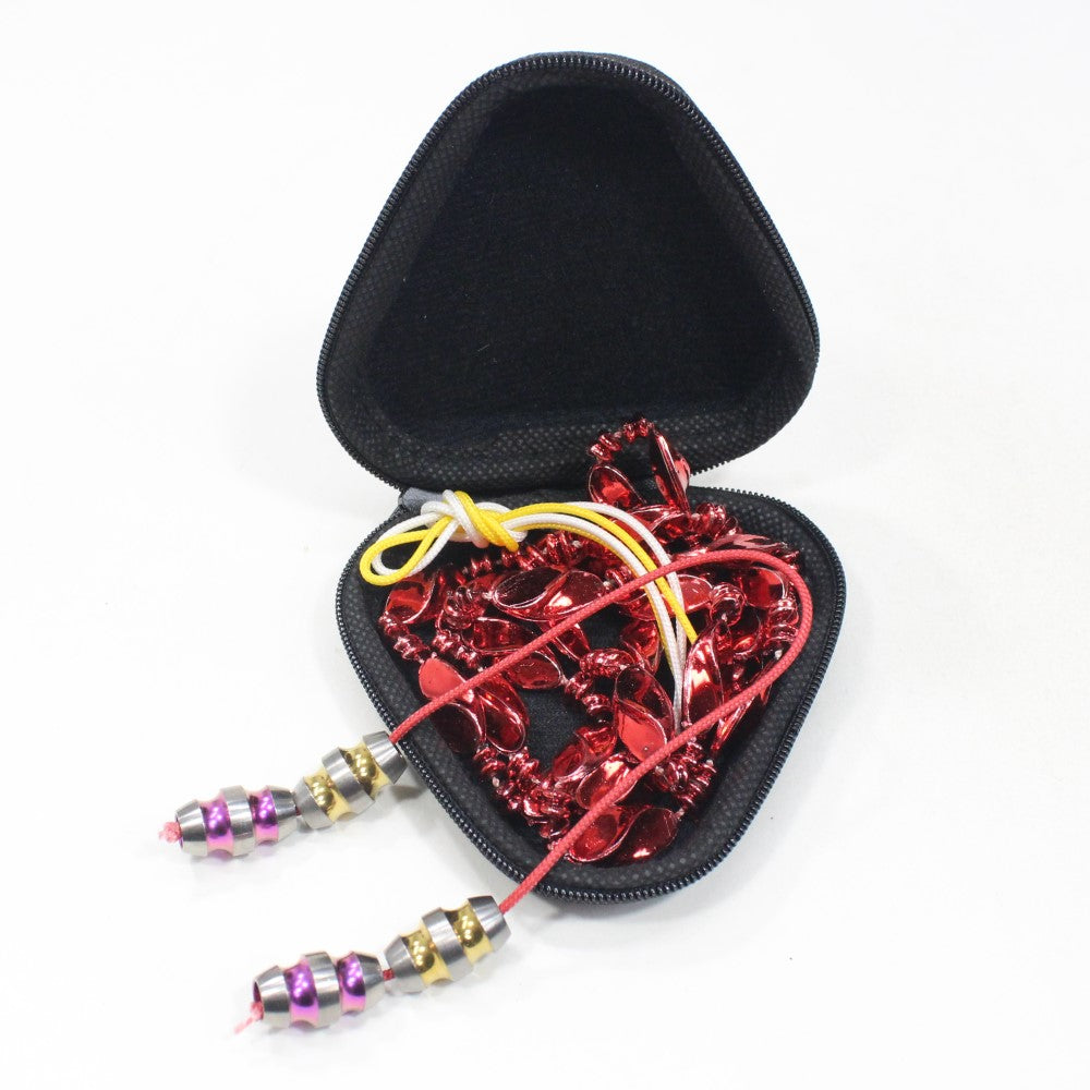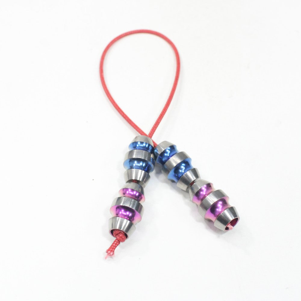 The Zeekio Mardi Gras Begleri Skill Toy uses colorful titanium beads that will catch your eye. Each bead weights approximately 5.4g which makes a total weight of almost 11g on each end. This gives you that perfect weight if you want a little more weight than the typical mini begleri or a little less than the regular.