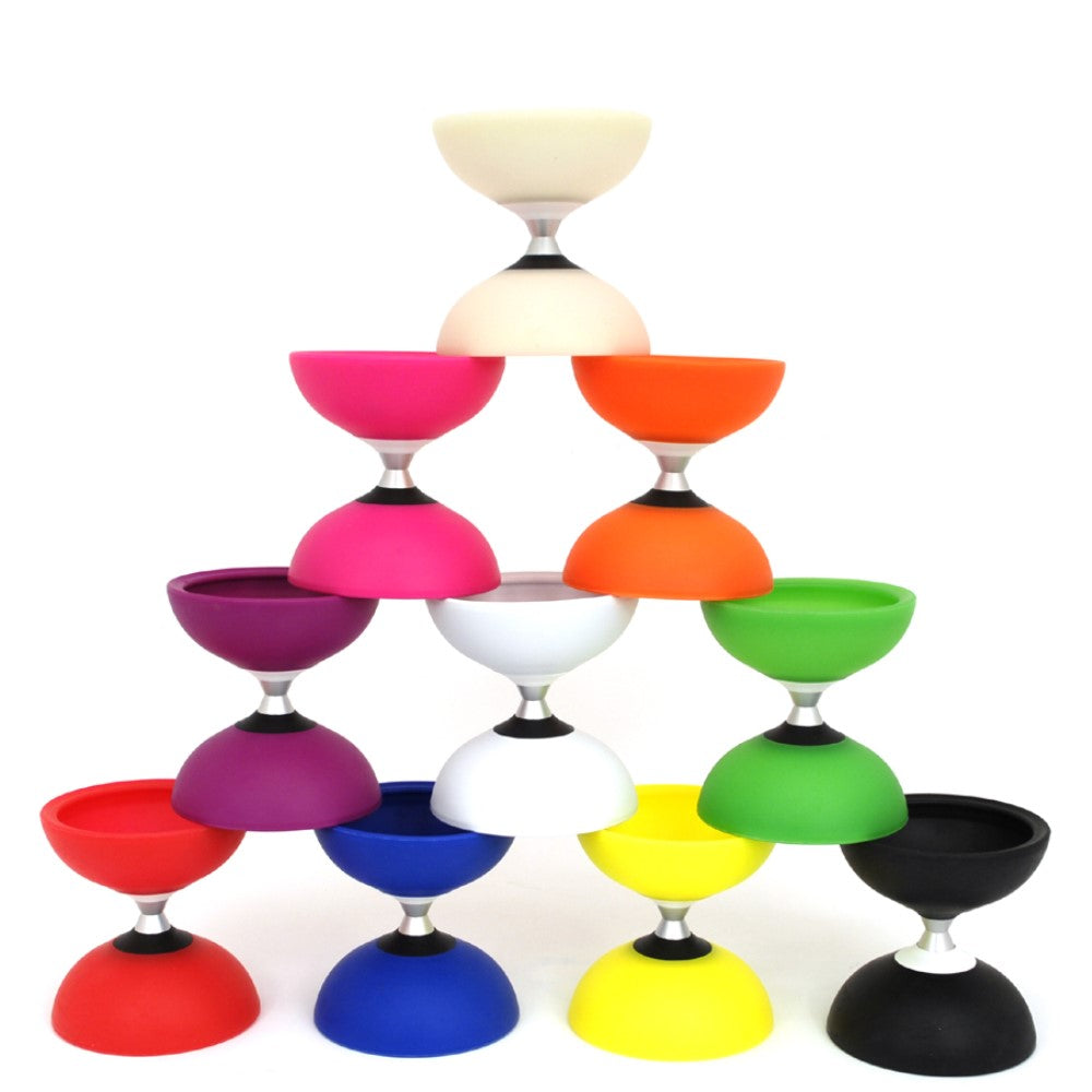 The Mister Babache Finesse IV diabolo is a top of the range, light weight diabolo. Like the III Finesse diabolo, it's made from a resistant, flexible rubber polymer molded into a thin butterfly shape allowing you to perform close body moves easily using either one or two diabolos. The IV (fourth generation model) has been remoulded to focus even more weight towards the rims of the cups than in previous versions of the Finesse. This adds momentum to the edges of the diabolo, therefore increasing spin times. The G4 is also 20g heavier than the III, giving the IV that extra bit of oomph. Add the Evolution 2 Bearing Axle to this amazing diabolo and you have something really outstanding! As you'd expect from Mr Babache, this bearing axle is a dream: it's totally silent, has a great shape, is extremely stable and provides you with super long spin times. There's a reason why Babache took several years to release the Evolution 2 - they wouldn't settle for anything but the very best. The Evolution 2 bearing axle is nice and wide (the width hub to hub is 22mm with this axle) aiding stick and finger grinds among many other tricks. Sticks and string included.