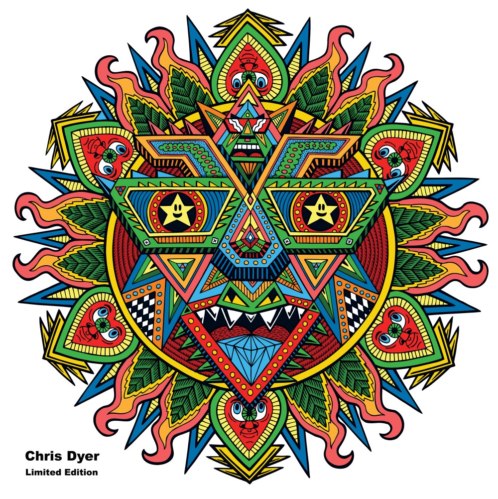 Each one features art created by Chris and printed in color fast vivid colors on both sides. Not only is this a great flow toy that will bring hours of fun and entertainment, but a quality reproduction of some of Chris' amazing art. Whether you hang it on the wall, or spin it with your friends, the good vibes just keep coming.