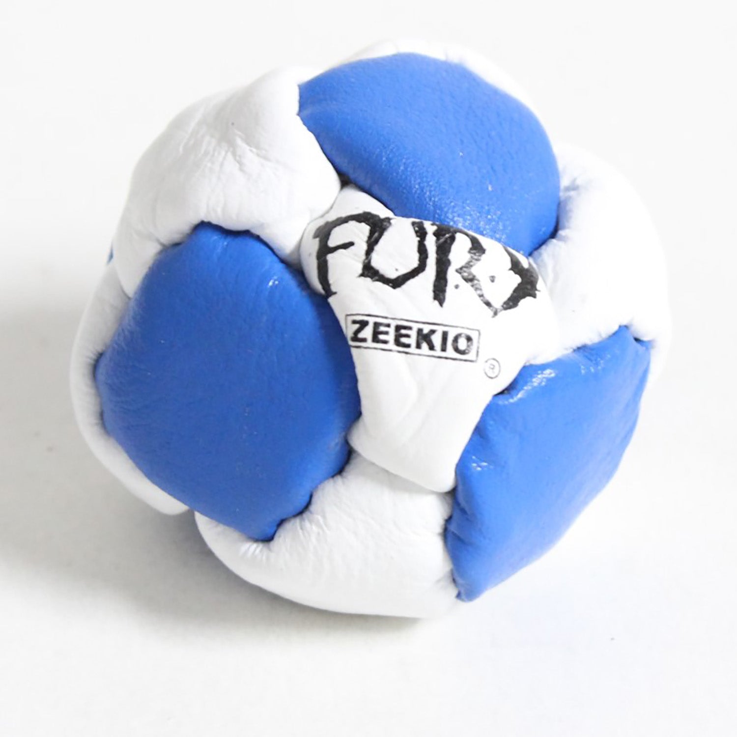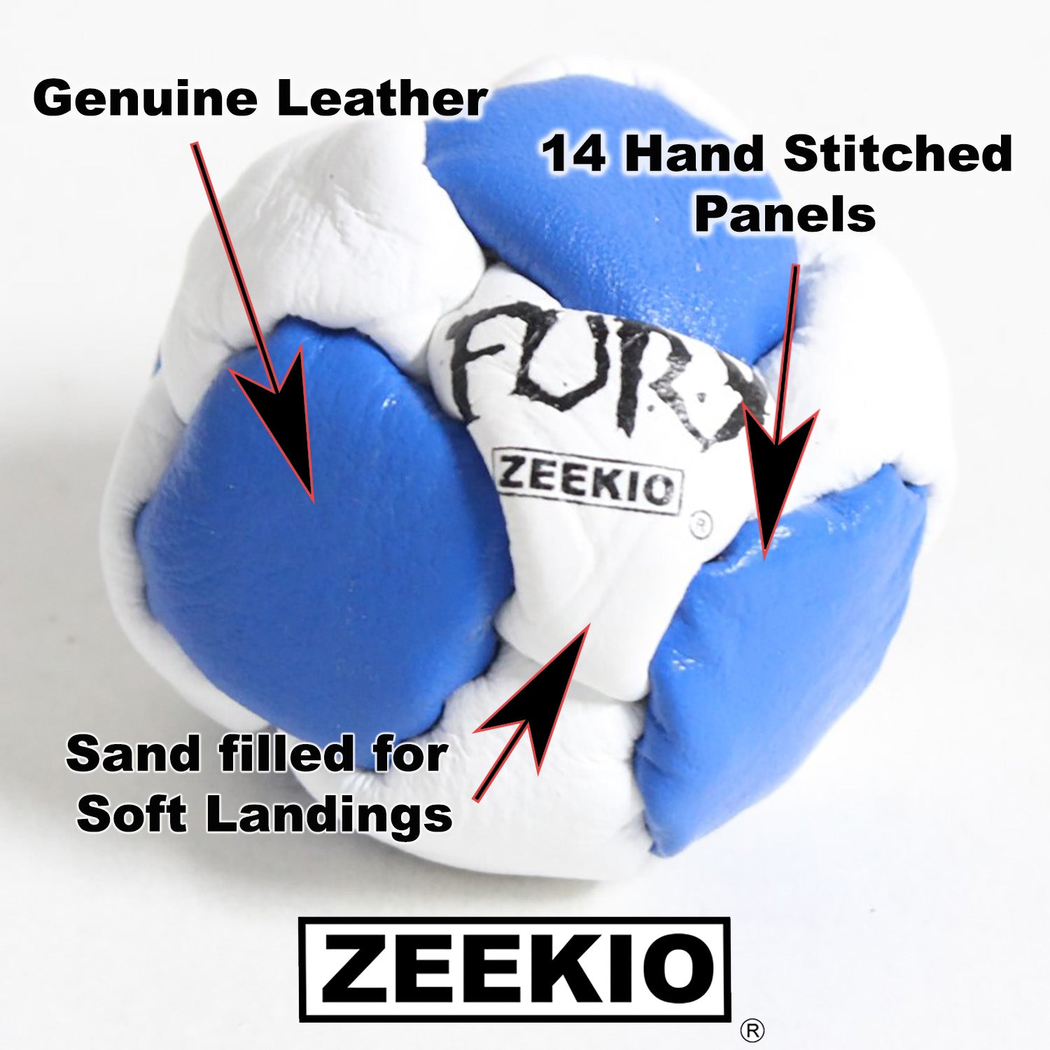 The FURY by Zeekio is a handcrafted 14 panel Footbag made from genuine leather and sand filled. It is hand stitched and very sticky for that extra edge of control.