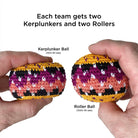 The best of both worlds, the new Bocce set is twice as big as the ultralight Bocce set but is still portable: the whole kit weighs only 2lbs. which is the weight of one official Bocce ball. This kit comes with 2 sets of 4 matching balls. Each of the two teams in the kit has two hard-packed Rollers and two lightly stuffed, floppy, Kerplunkers which serve as blockers. This adds a new strategic twist to the spin on traditional Bocce. Play from family rooms to campsites, dorms to tailgates, backyards to beaches, break rooms to bars. Simply throw the Pallino (the 9th ball which is smaller and is the target) wherever you like that round and have at it- on the coffee or picnic table, under the chair legs, over your shoulder, wherever!