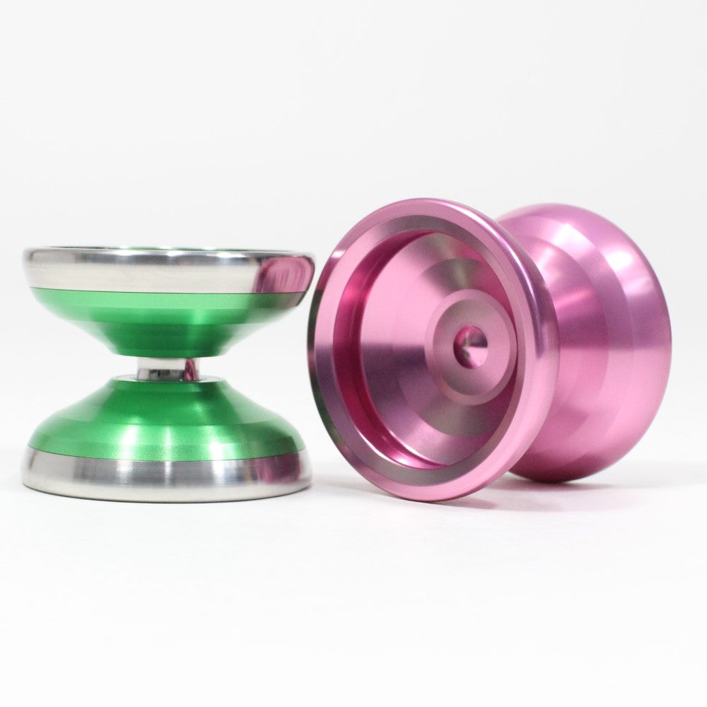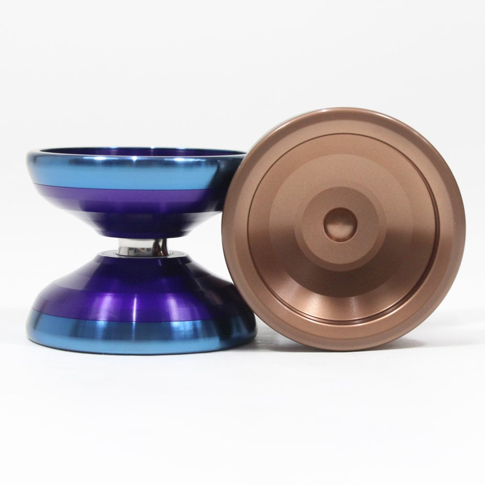 The UNPRLD Ion and Anion is a bimetal and monometal yoyo combination, meant for general play. This yoyo was designed for my (Tyler Hsieh's) yoyo play in mind. The Ion and Anion are designed for maximum comfort, spin time, and general play, and is good for 1A, 3A, and 5A. The result is an affordable yoyo that is good for any type of trick, whether it be fast, slow, intricate, or simple. The yoyo was made with affordability in mind, with no sacrifice to the quality.