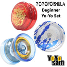 Yoyoformula has brought you the ultimate beginner yo-yo set at an incredible price! This set helps you learn what style of play you like best! The set includes a super fun polycarbonate plastic yo-yo with hubstacks. It also comes with a professional quality looping yo-yo and an excellent beginner mono-metal aluminum yo-yo. A 10 pack of strings is also included!