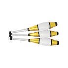 Zeekio Pegasus Juggling Clubs are made with a multi-piece design. The wrapped handle flexes over the inner dowel for a perfect feel in the hand. The body is white PVC that is scuff resistant and retains its shape even under tough long-term use. The Pegasus has a sturdy rubber knob and rubber cap. Zeekio created precision-crafted juggling components perfect for learning or for the experienced professional!