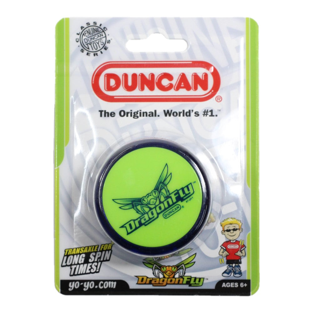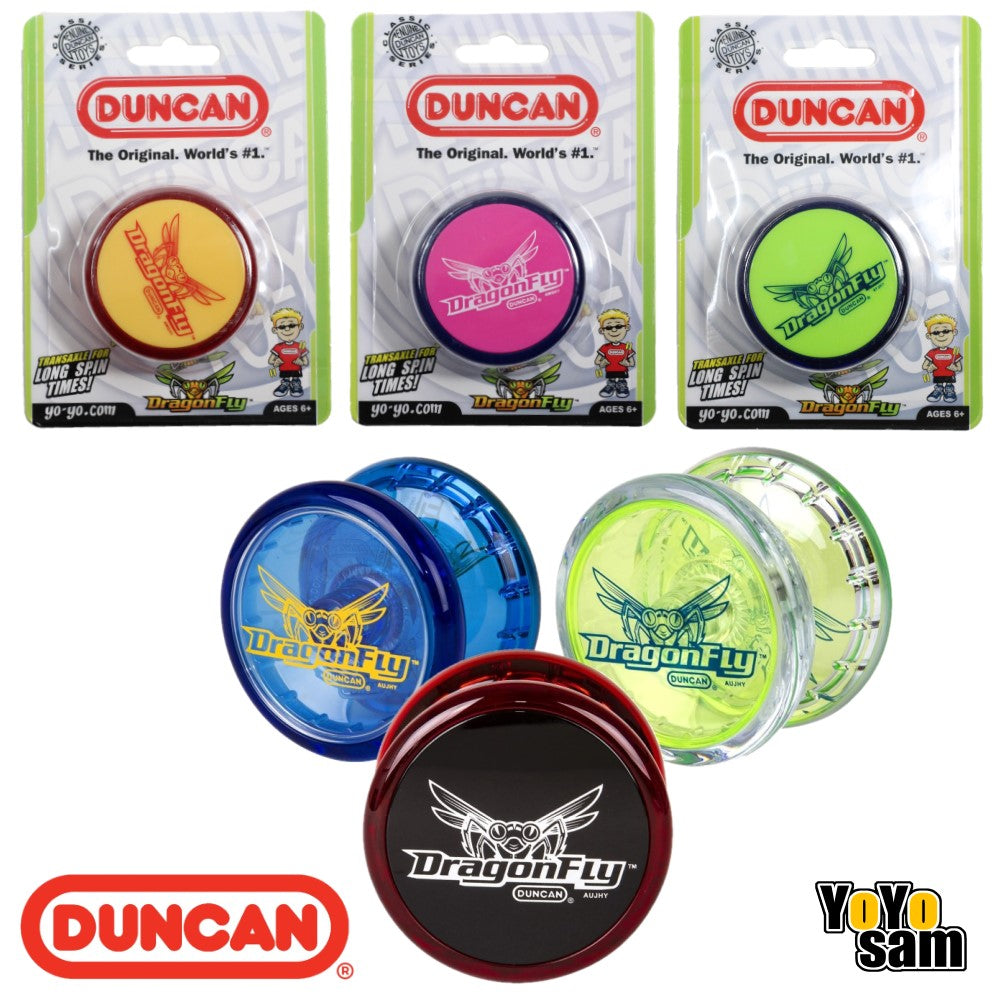 The Duncan Dragonfly is back and better than ever! Redesigned from the ground up to meet all the needs for a great beginning yo-yo, the Dragonfly features a polycarbonate body with a plastic transaxle design for extended sleep time, simple construction and reliable response. Screw apart steel axle for knot removal and starburst response provides snappy returns for looping tricks without the need for changing pads! Beginner to Pro the Duncan Dragonfly is a fun yo-yo for the masses, and an excellent update to a classic yo-yo for modern players!