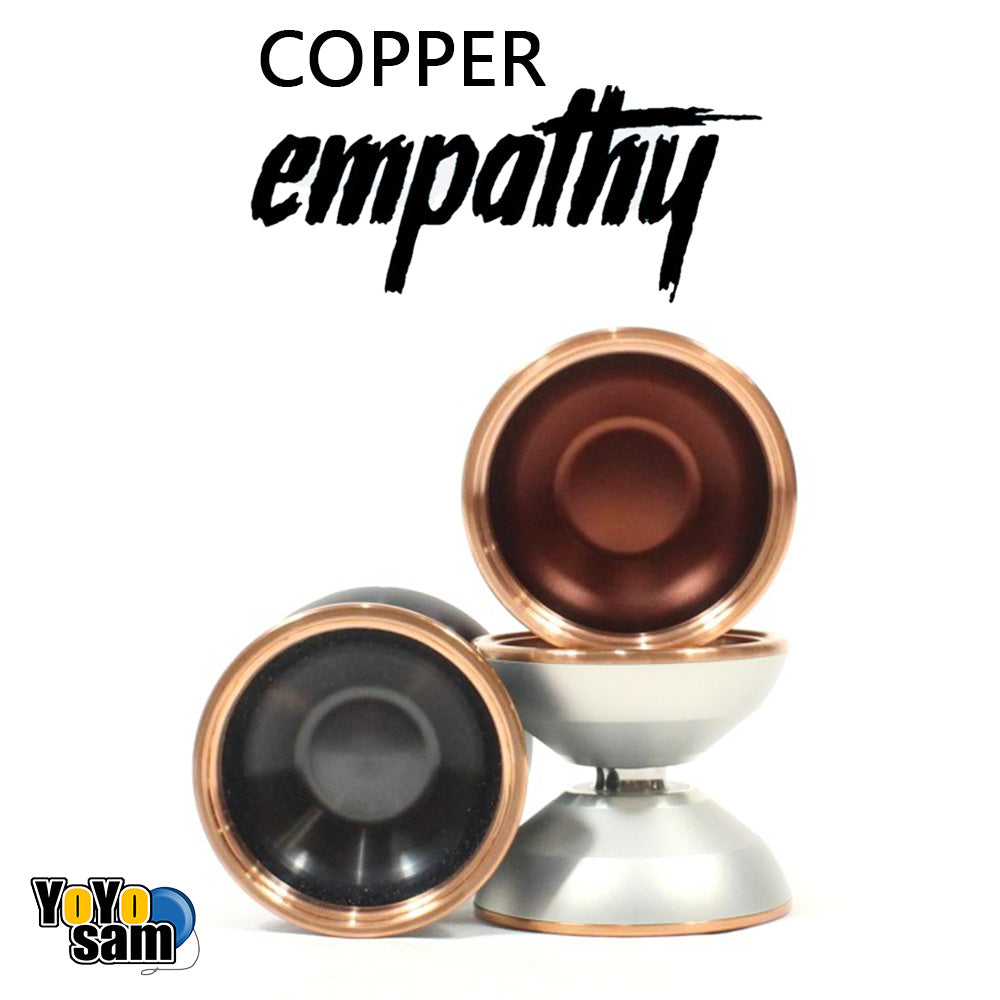 Empathy "Copper" Yo-Yo! Keiran Cooper's first bimetal signature yoyo. Built from 7075 aluminum with copper rims! The design follows the apathy shape, but with an increased size and a new material composition.