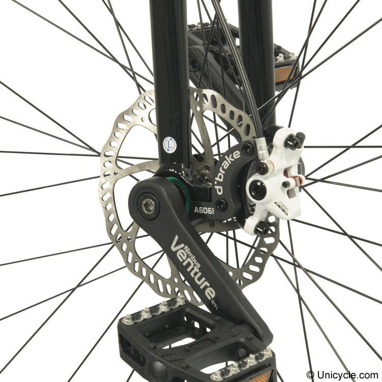 No other Unicycle comes close! The Nimbus Oracle has set a new standard for disc brake equipped Mountain unicycles. From its simple yet strong aluminum frame, to its newly designed disc hub. You may not be in a race but others will have a hard time keeping up!