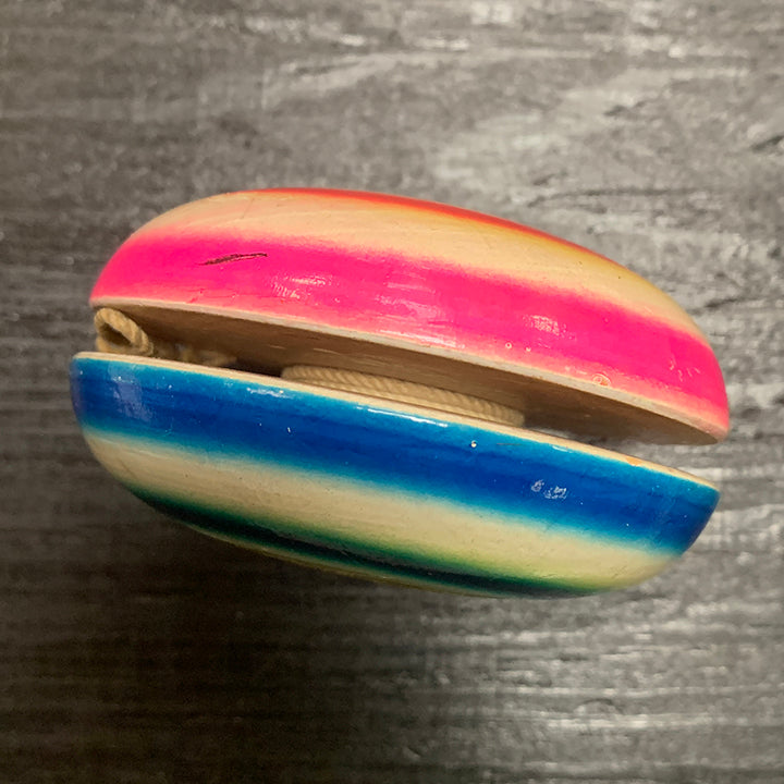 What can we say. It's a big wooden yo-yo from Mexico. Great colors.