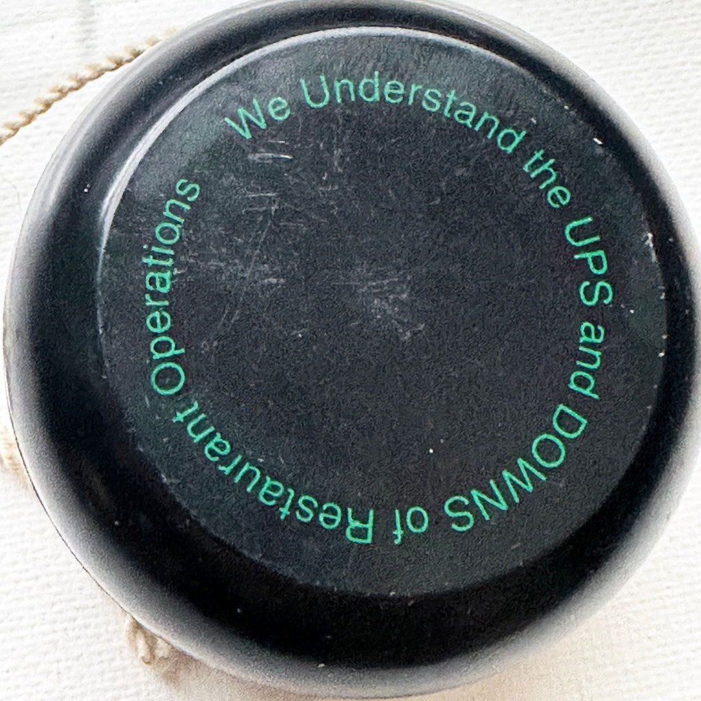 Black with Green lettering. Aloha - back says "We understand the UPS and downs of Restaurants operations". Get it? Ups and downs.