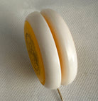 Yellow hubs on a white yo-yo with gold seal. Very good shape. Looks like it was hardly played with.