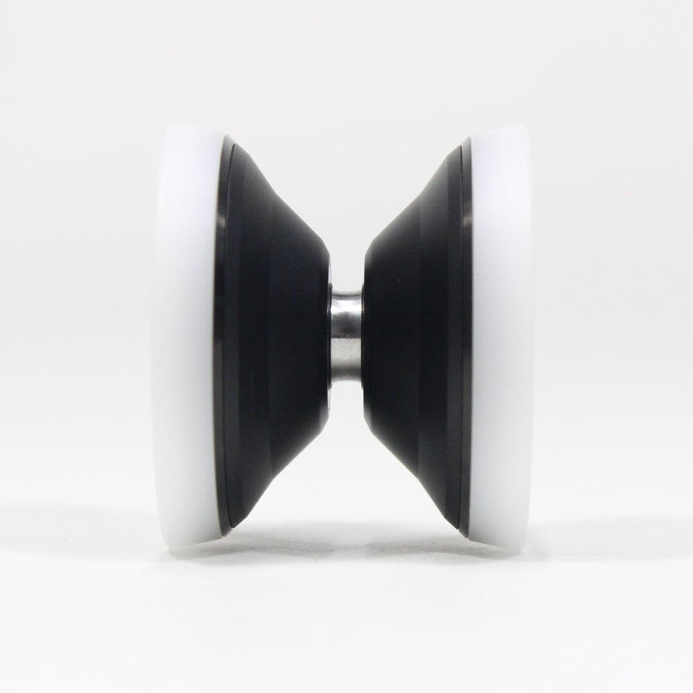 Created to commemorate the 10 year anniversary of ACEYO, The A10 features stainless steel rings sandwiched between a anodized aluminum body and machined POM rims. This use of multiple materials to achieve a design that has the spin power of a bimetal yoyo with the soft touch and ding protection of POM! We find with this unique weight distribution, the A10 plays more floaty than traditional competition styled bimetal yo-yo but is still capable of competitive tricks with plenty of spin time to spare due to the power of the stainless rings and low wall design.