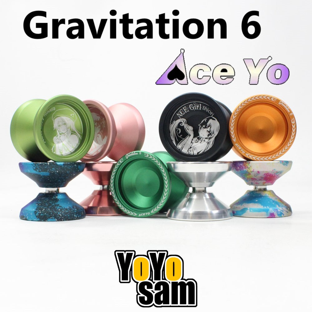 AceYo's Gravitation series is its budget friendly mono-metal yo-yos that seek to provide advanced competition level playability for an entry level price tag. The Gravitation 6 continues this core idea and has been updated to the current trend of wider bodies for easier catches on the most difficult tricks. When compared to previous generations, you'll notice the profile is much more "H" shaped and the addition of a blasted, fingerspin friendly cup area. The Gravitation 6 has a refined feel and has a floaty fun design that performs great, doesn't break the bank and surely is a great addition to any collection!