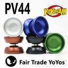 The PV44 is the second release from Fair Trade Yoyos! Featuring a slightly undersized diameter with an extremely comfortable profile, the PV44 blurs the line between organic O shape and hard H shape into something new that has all the benefits of both! Focusing on float and ease of movement and this yoyo has a very laid back chill factor that really offers a fun experience while playing.