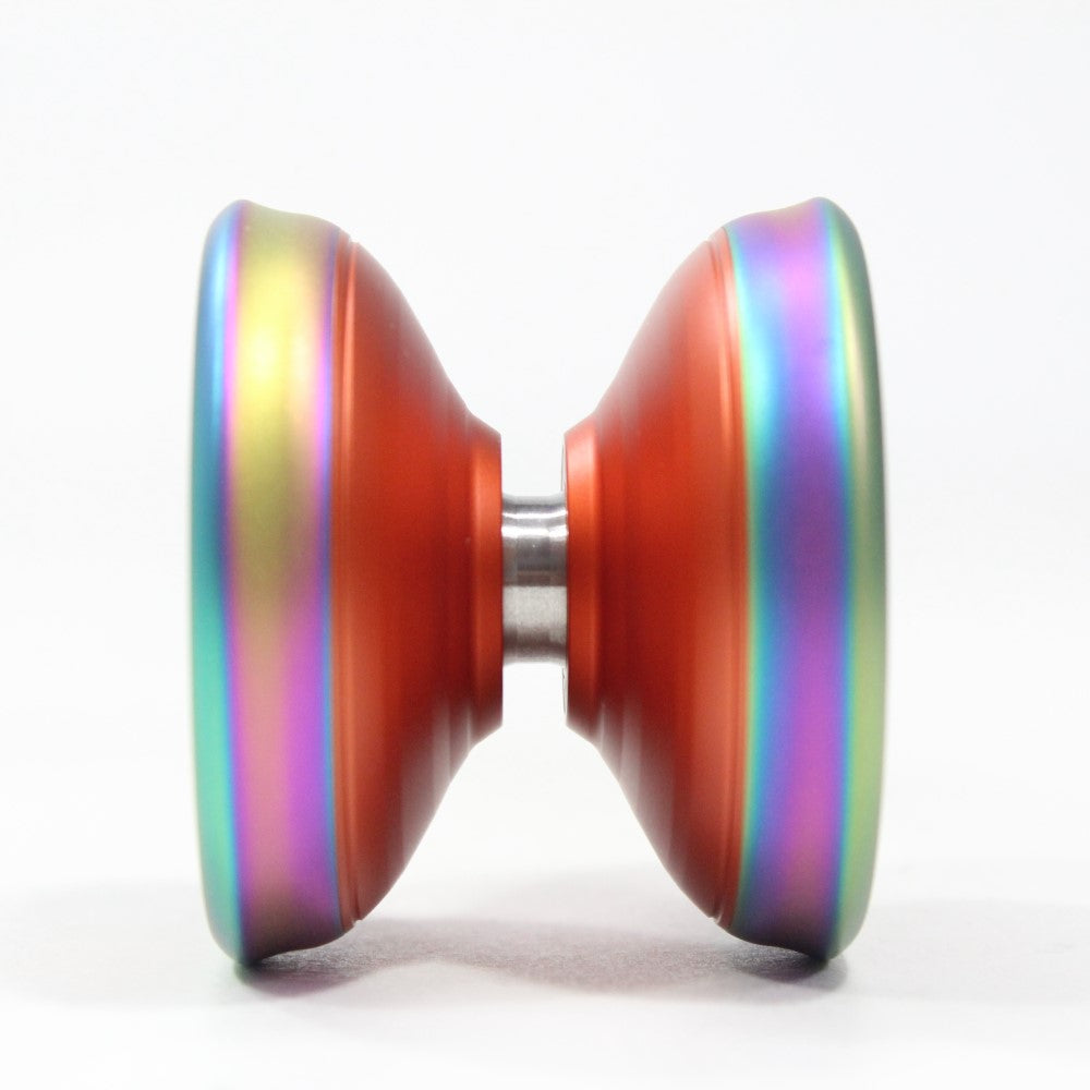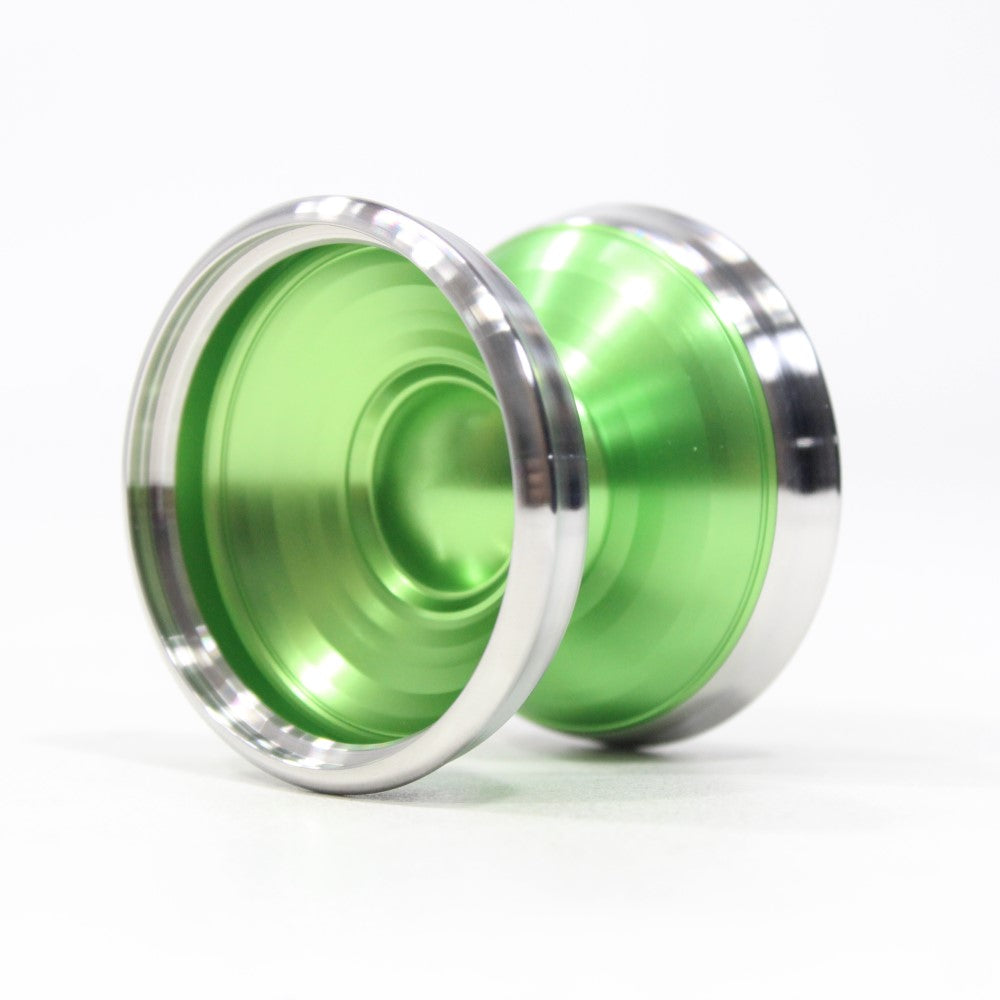 Motion YoYo wanted to utilize a shape that is not quite as common as other shapes. For accelerated, they went with a "bell" shape. The cuts on the body of the YoYo help bring a pleasing view at all angles, and the way light reflects off each cut just beautiful. Carrying over some traits through Motions lineup, the sunken dome and the accent grooves, and last but most certainly not least, borrowed the rims from Centrifugal and an added "bump" to further set this model apart from other yo-yos on the market.