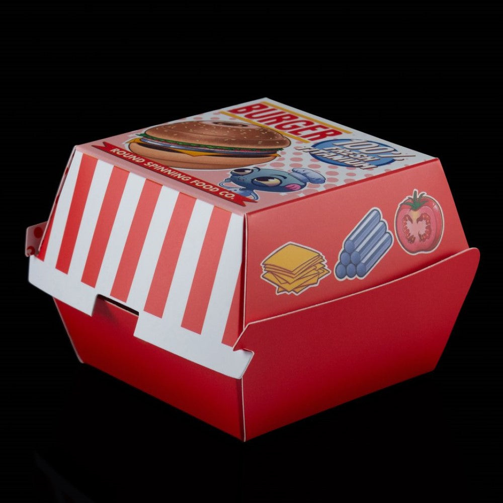The Burger artwork was done by ATILA. The dominant color palette of the artwork closely mirrors the red hue of the In-N-Out logo. Burger would not be complete without a mini burger box, with Burger ingredients on the side flaps (noticed the titanium bars?) The certificate takes design cues from the In-N-Out menu, while its ketchup sachets were referenced for the pin.