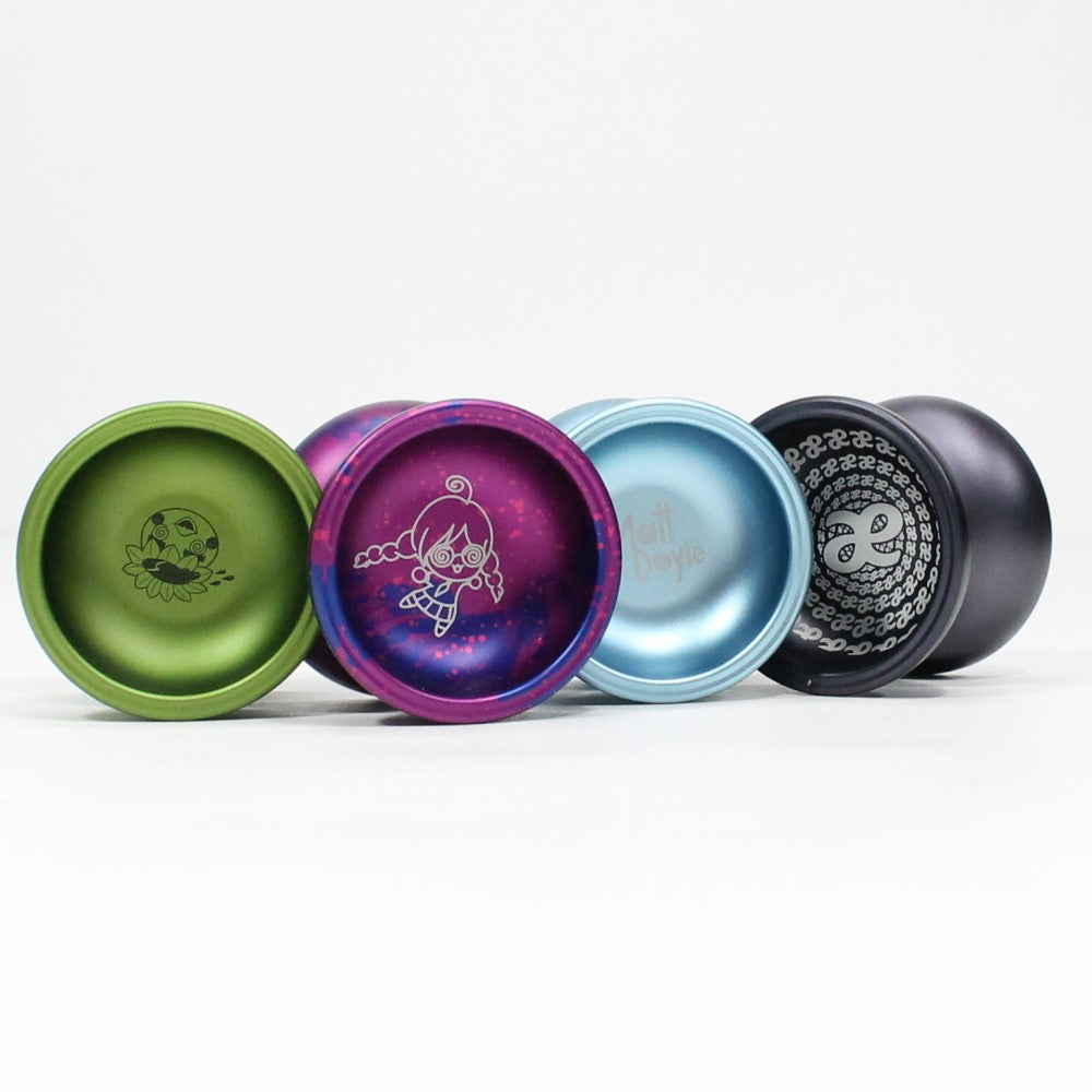 From the start the Kappa was designed to challenge conventional wisdom about organic profiles and the role of rim weight in performance. In a market split between casual organic yoyos and competitive models composed of harsh angles, the Kappa stands out by refusing to compromise between performance and ergonomics. Instead it borrows the best of both worlds, combining comfortable organic rims with a low-friction V-shaped inner profile. Stability is achieved through an aggressive weight distribution enabled by 7068, but the spin power is balanced with a modest total weight of 64.3g to maintain maneuverability. The result is something remarkable- a truly competitive organic yoyo for the modern era.