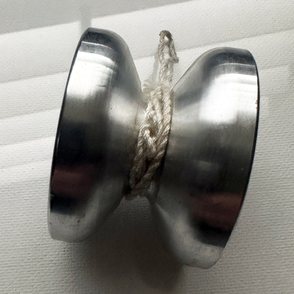 You can see the lasered lettering on this yo-yo, but it shows up very light on the raw aluminum.