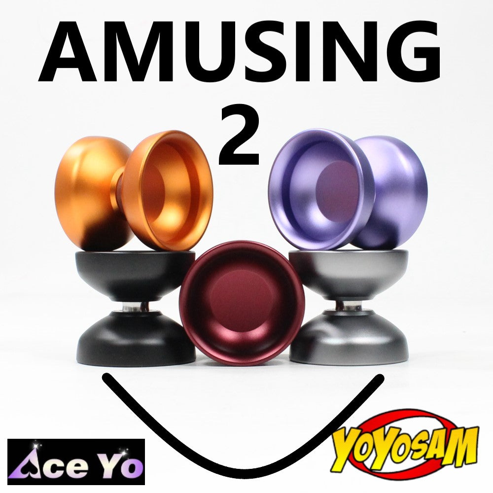 Amusing 2 still has the features of the first run of the Amusing but adds a little to the Diameter and some great new color combinations. A wide organic profile for an extremely comfortable catch on high performance rim weighted design. This yoyo is a great all arounder and is a good choice for any collection!