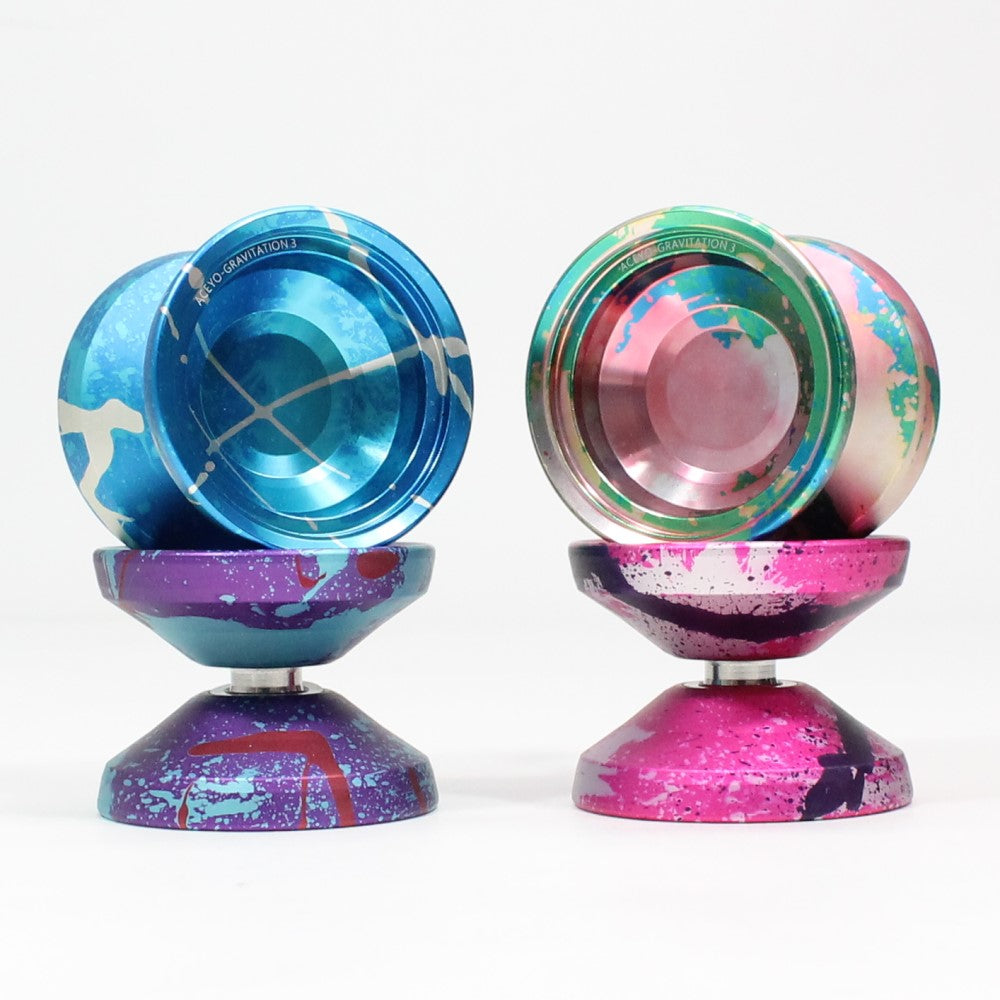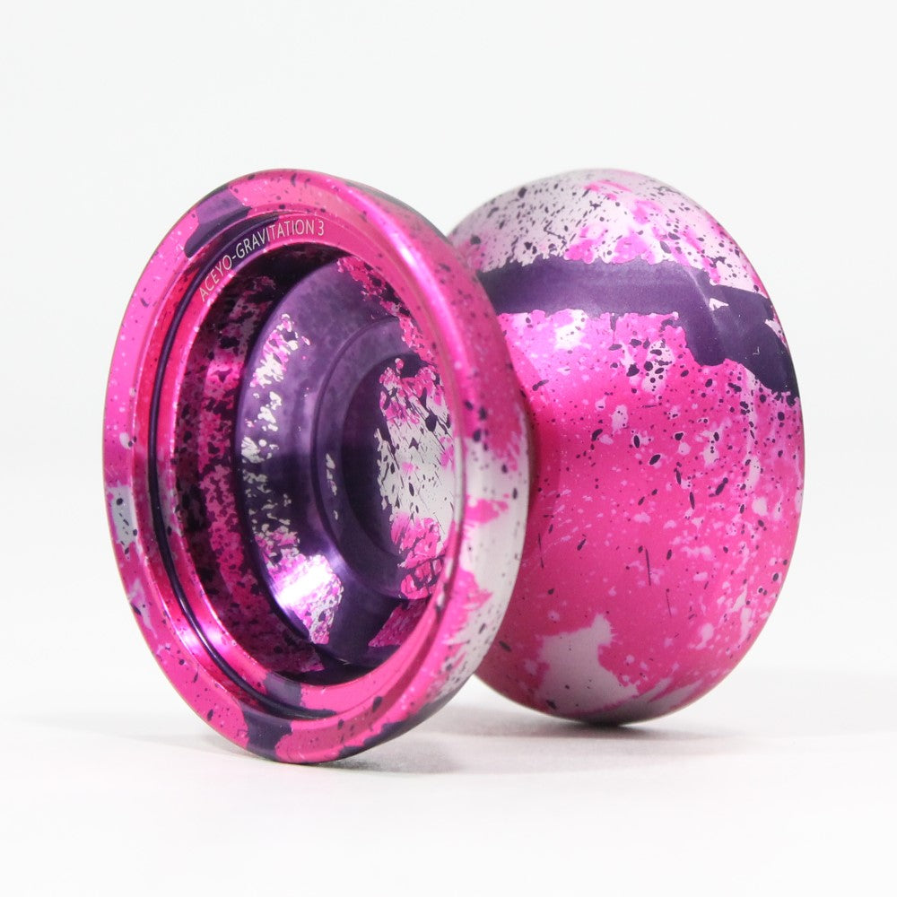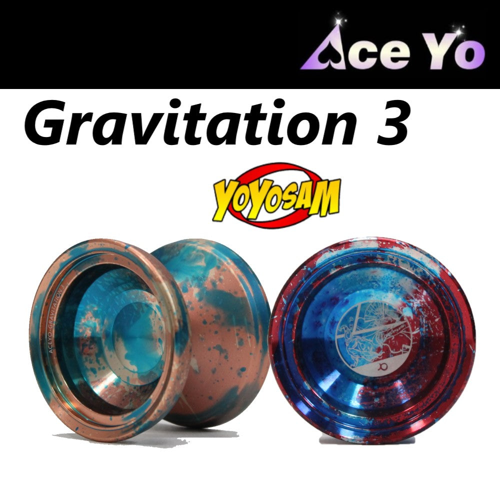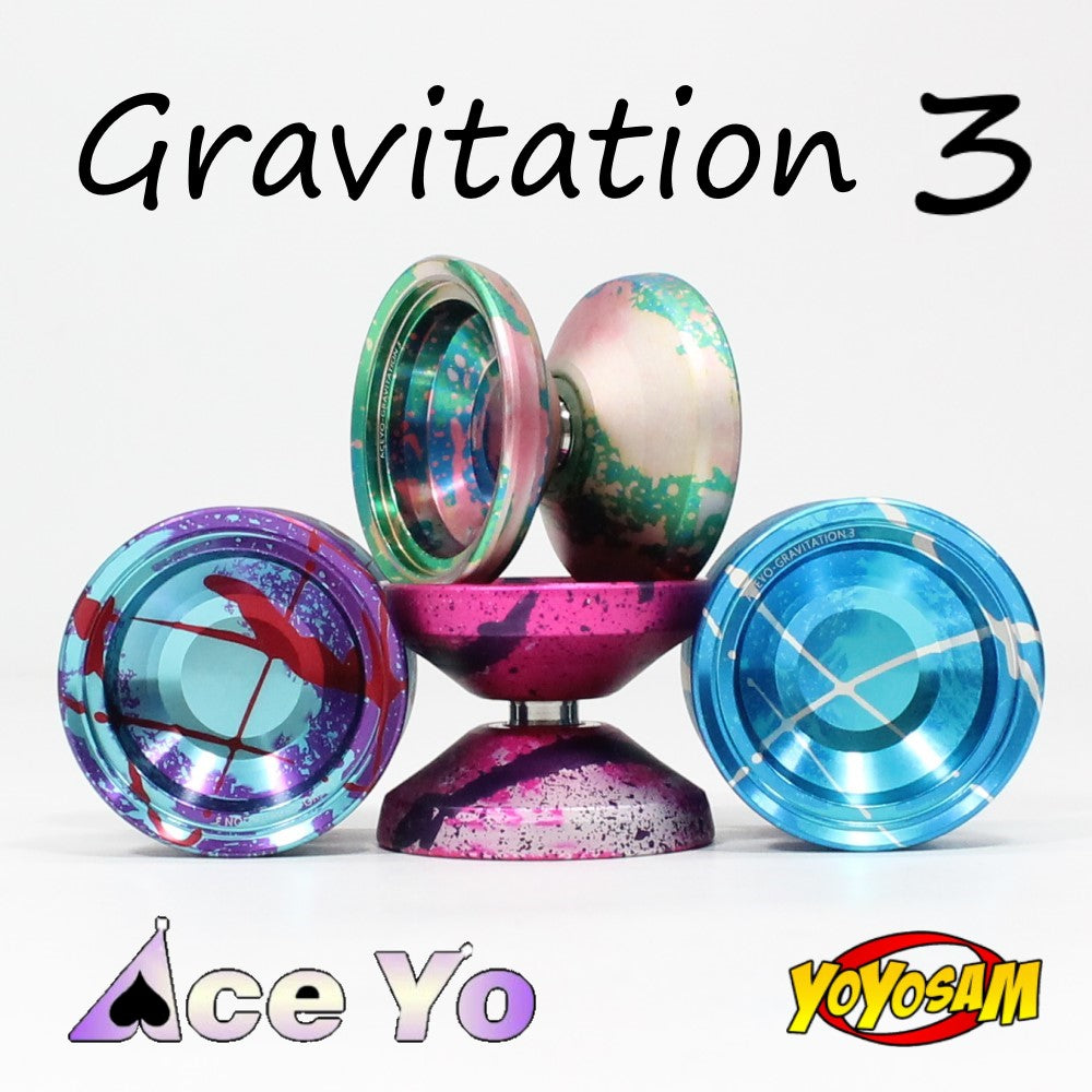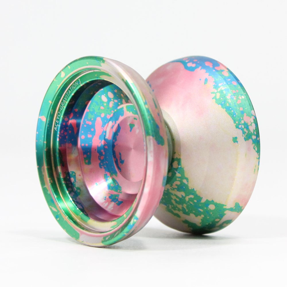 Aceyo Gravitation series are great for players looking for a solid playing monometal yo-yo and a great price! Featuring some eye popping colorways, the Gravitaion 3 is a solid addition to the Gravitation series of budget friendly, highly capable yo-yos! It features a soft blasted catch zone for long lasting grind tricks, and a speedy V-shape profile for practicing your fastest speed combos!