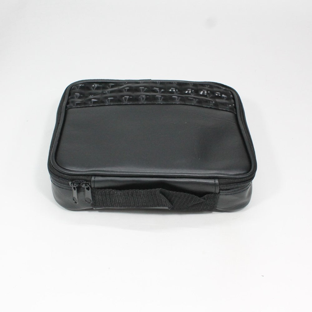 Leather Bag with detailed front. Handle and zipper closure. In addition to places for your yoyos there is also a storage areas for your accessories in the foam and in a mesh pocket.