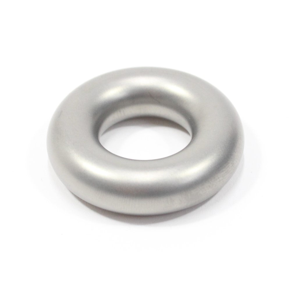 The Donut Hollows feature a 10mm cross sectional diameter, much thicker than our original Hollows, but with the same overall diameter. This gives these beauties a much more substantial feel in the hand, with accentuated ergonomics that are great for manipulations as well as just general handling. Somewhat counter-intuitively, these new hollows are in many ways more conducive to manipulations than the original Hollows. As many of you already know, the finish of these handhelds is a bit counter-intuitive--the smoother the surface, they grippier they tend to be, and the blasted finishes tend to glide through the fingers more smoothly, but with somewhat less control. These blasted beauties are extremely comfortable.. and frankly, hard to put down. However, folks who are accustomed to handling the originals may find the new Donuts a bit awkward at first, as they handle a bit more like the original Deadeyes themselves rather than a Hollow. Whatever your intentions for them, it's hard to deny that they're also just very nice little pieces of metal..