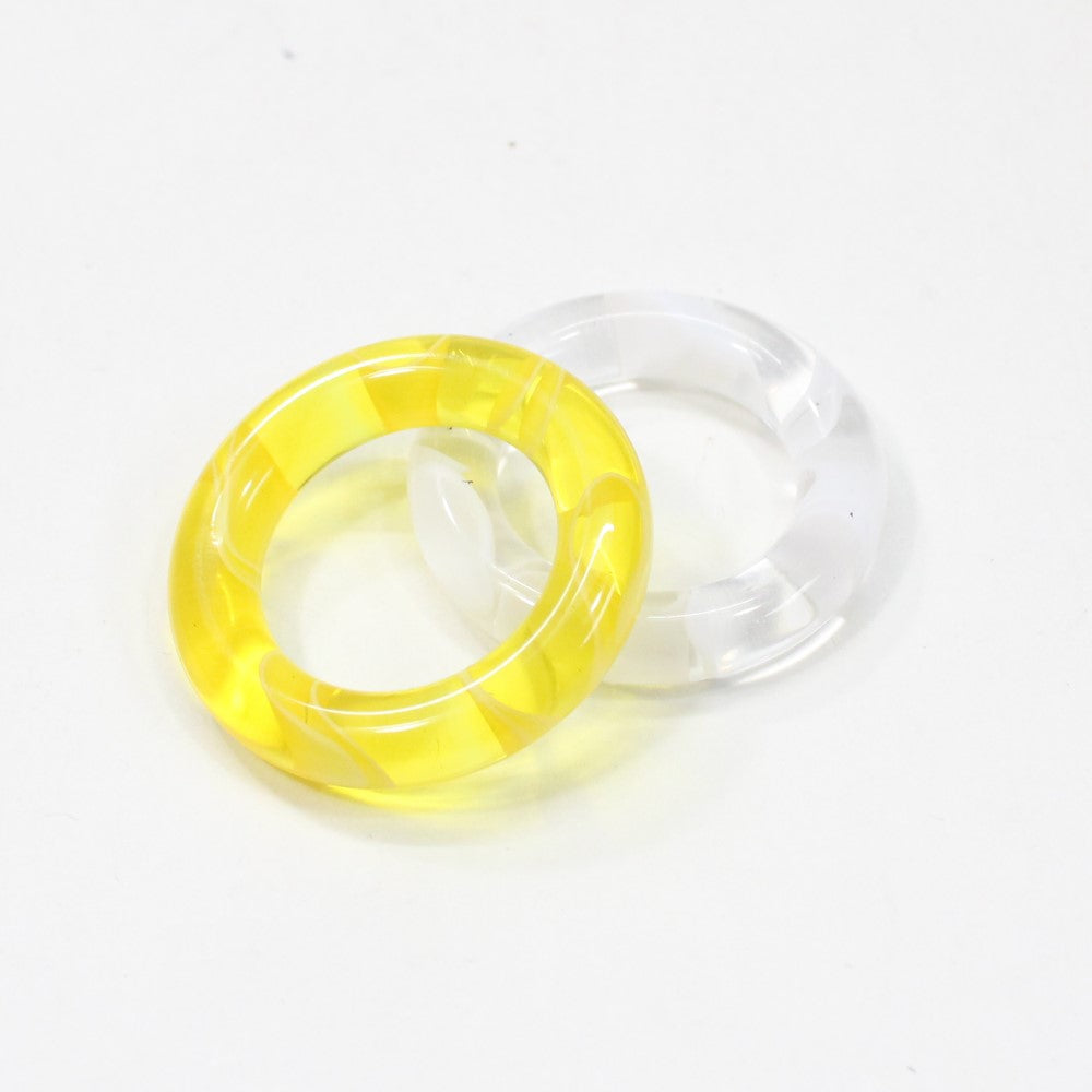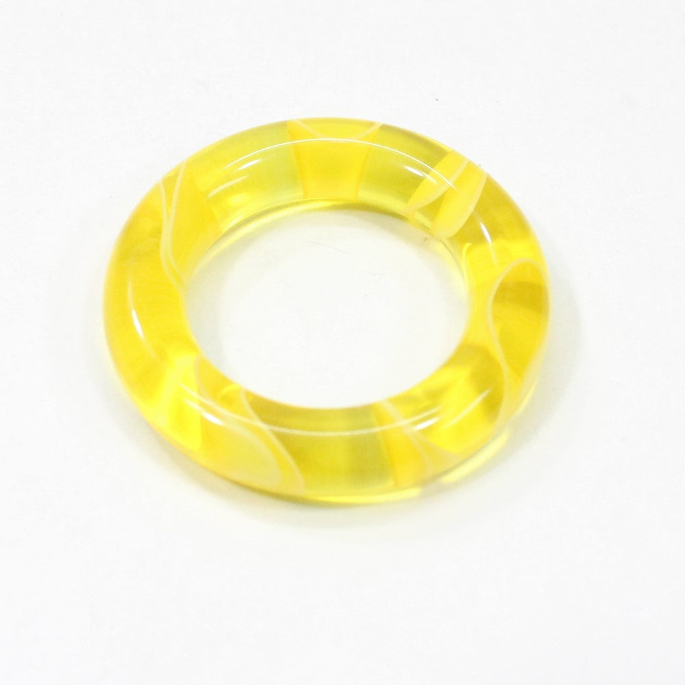 The Deadeye Hollows are a progressive adaptation of our Deadeye contact coins, consisting of a rounded ring of material, which allows the coins to be manipulated in different ways. The acrylic version of the Hollows is very light at 4.4g, and has good grip (much like our acrylic "ice" bones), and although this makes it hard to perform some of the standard Deadeye moves like isolations and knuckle rolls, the acrylic edition is extremely well suited to slow play that makes use of the round contour of the Hollow shape. These are not recommended as the generalist version of a contact coin, but for those wanting to work on some new tricks, or just want a funked up version for pocket carry, the acrylic Hollows will be available in two beautiful variants, a white swirl and a yellow swirl.