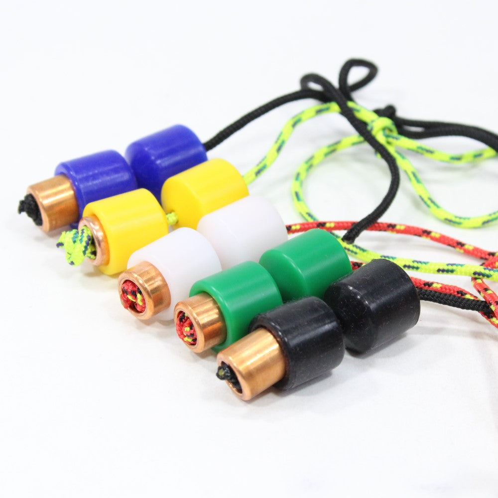 These are AroundSquare Everyman Delrin begleri. The set comes with either two stainless steel or copper core beads and two colorful Delrin covers. As always a nice embroidered AroundSquare pouch with extra strings and stickers is included.