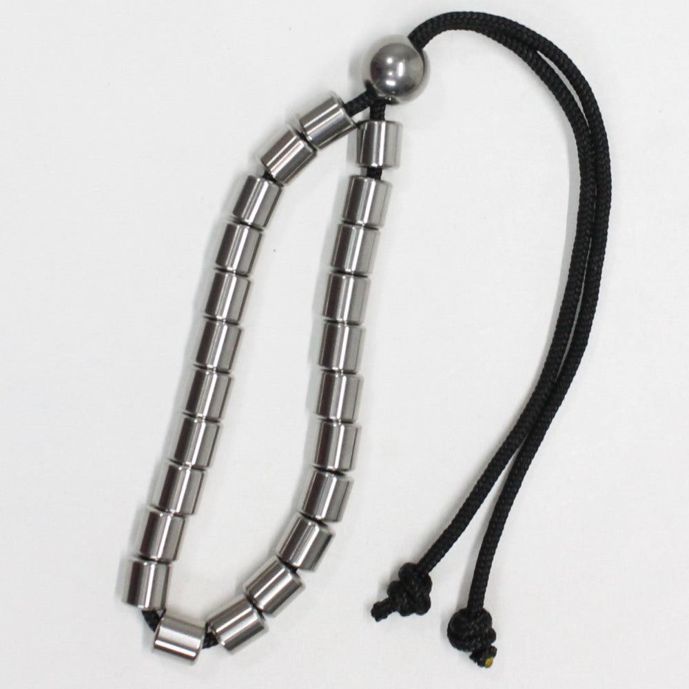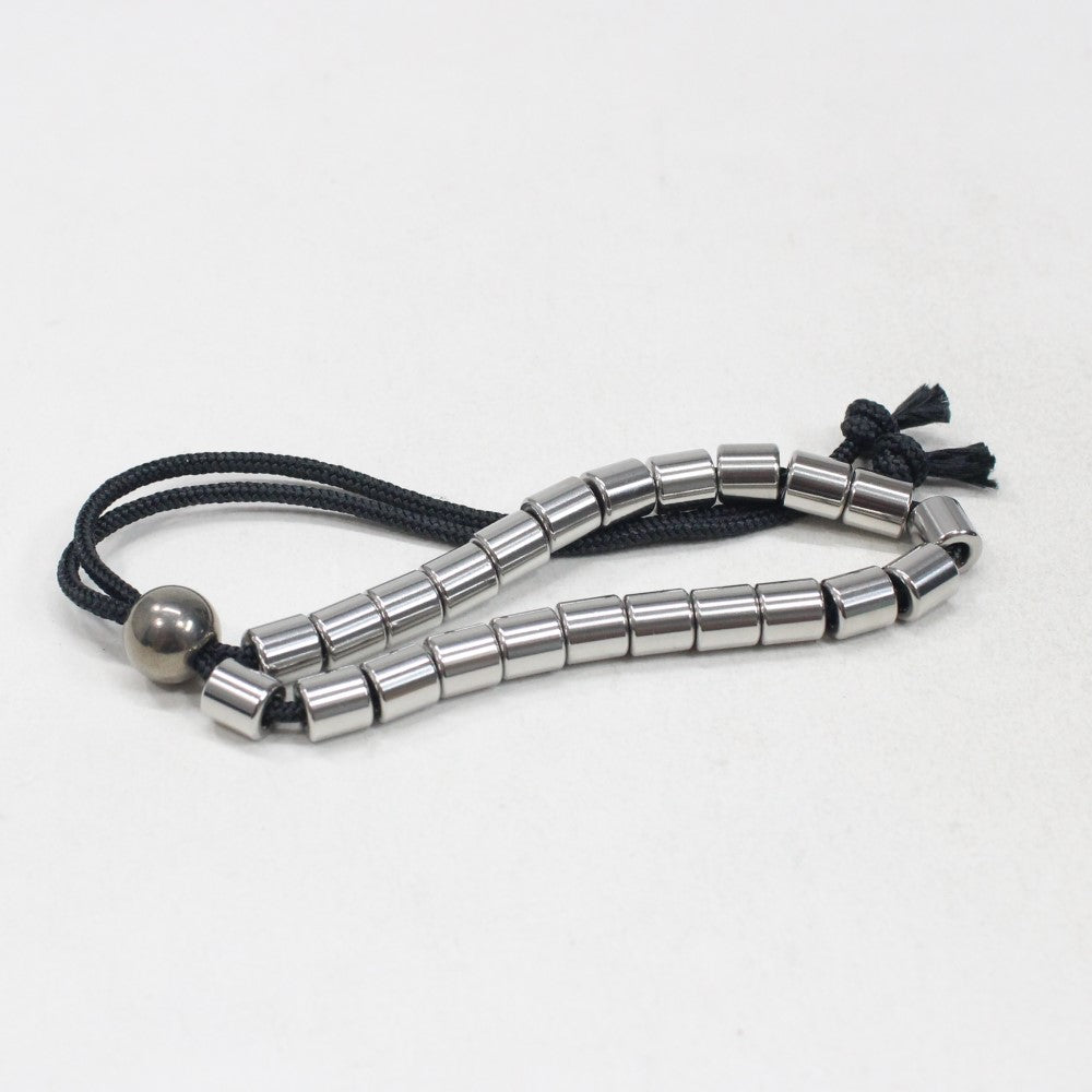 The Nano Edition consists of 23 of our cylindrical "nano standard" beads, along with a single "micro boss" bead to close/ adjust the loop size. The shape and size of these beads gives them a slim profile, whether they're worn on the wrist or carried in the pocket.