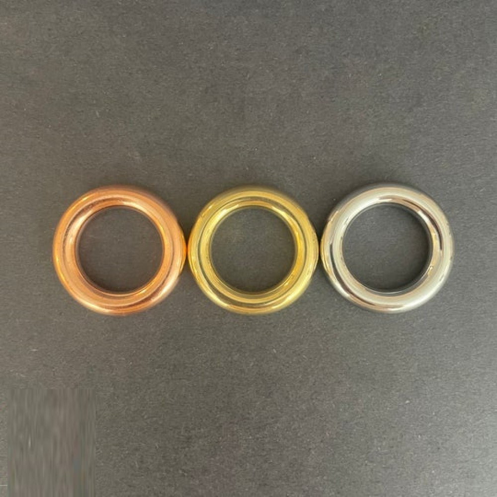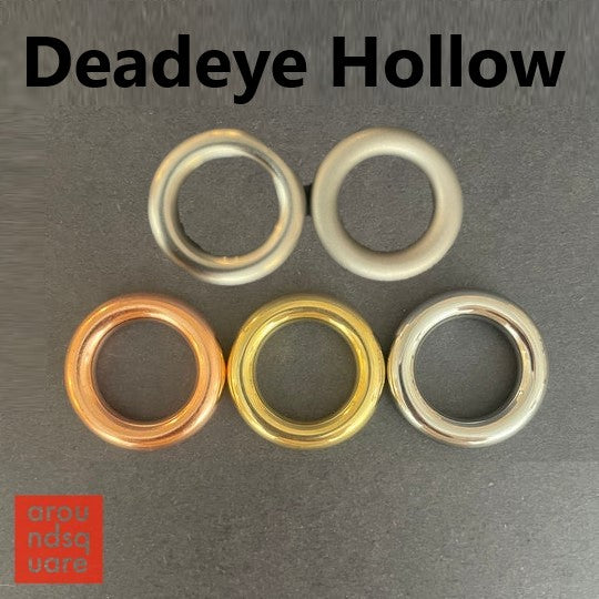 The Deadeye Hollows, are a variation on the theme of contact coins--coins designed for contact style manipulation. The Hollows bridge the basic idea behind the Deadeyes with new possibilities related to ring manipulation, by opening up the center and creating a rounded perimeter ring. The dimensions of the Hollows are the same as the original (large) Deadeyes, in both thickness and outer diameter.
