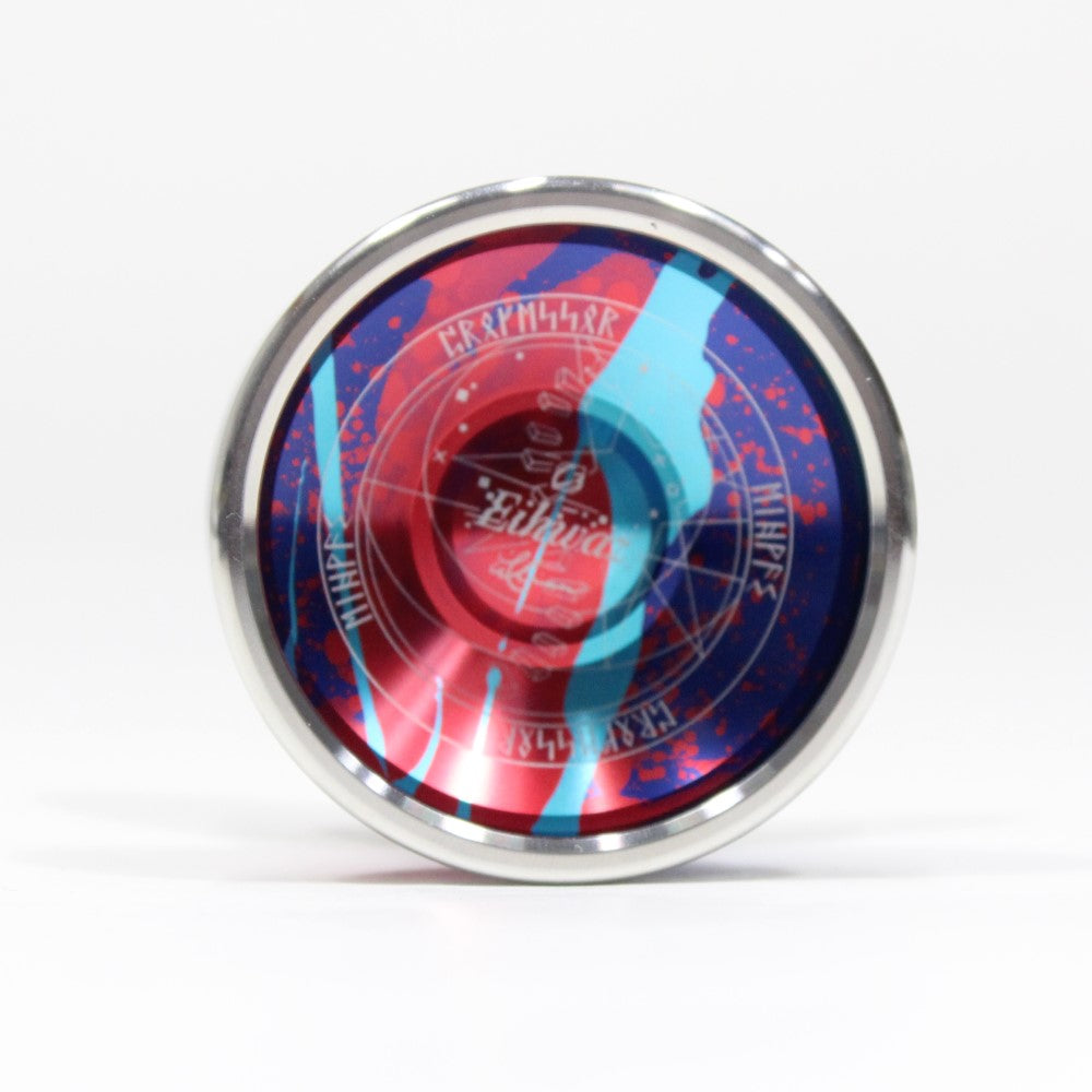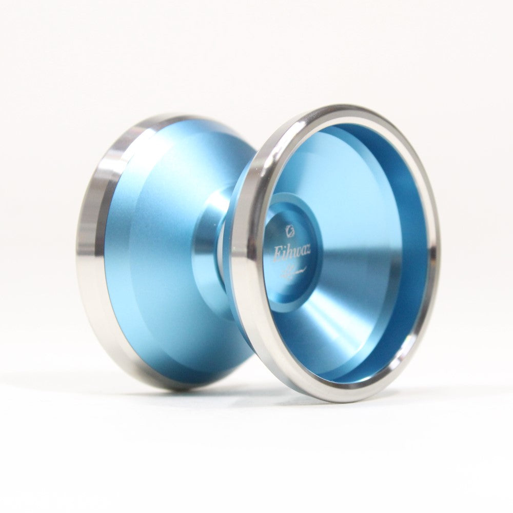 "Eihwaz" is the bimetal version of "Epiphanion", both designed by William. The two yoyos share a nearly identical shape, with the main difference being the use of either monometal or bimetal construction. The design of "Eihwaz" aims to provide longer spin times and improved stability during competitions. The final version of "Eihwaz" is faster in terms of movement speed compared to the previous pre-production version, while maintaining the same stability. This enables more precise control and the ability to stop at any desired position.
